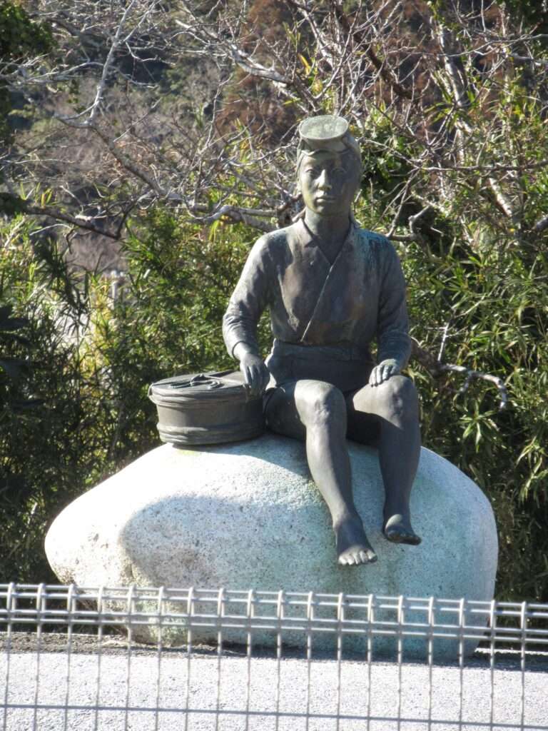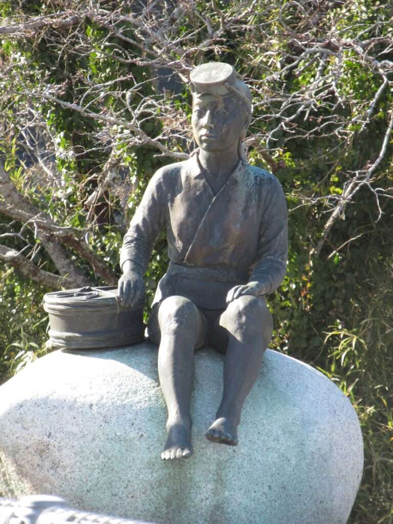 外房線の御宿駅のホームに設置されている海女の像でございます。御宿は「月の沙漠」が有名ですが、漁港もございますね。海女さんも活躍したってことですかね、そこの奥さん(←何処の奥さん?)。