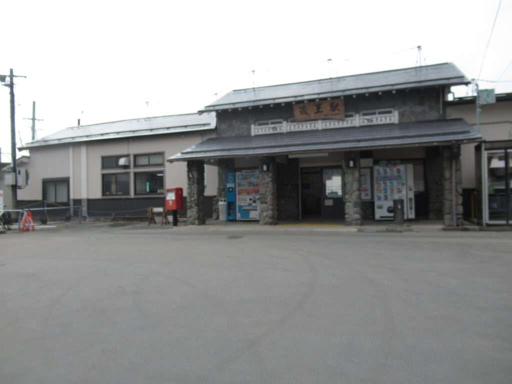 奥羽本線の蔵王駅でございます。「山形線」の愛称区間に含まれております。ミニ新幹線である山形新幹線が走行する複線電化区間にある相対式2面2線と側線がある地上駅で、かつては狭軌の貨物列車のため下り線が三線軌条化されておりましたが、貨物取扱が全て廃止されて狭軌の線路は撤去されております。貨物取扱があったため、広い構内となっております。平屋の駅舎がある業務委託駅で駅舎から各ホームへは上屋付きの跨線橋で連絡しております。東北文教大学、東海大学山形高等学校などの最寄り駅となっております。