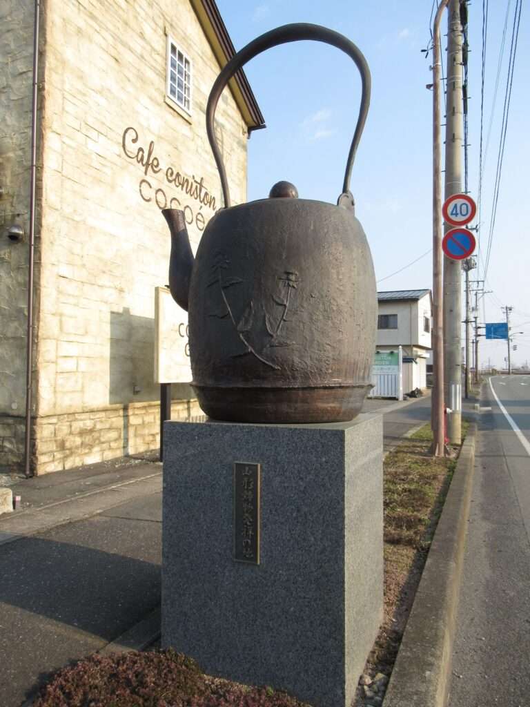 県道を通行中に銅町という場所で大きなオブジェを見掛けたので、見ると山形鋳物発祥の地と書かれてございます。この銅町山形鋳物は伝統的工芸品として指定されているもので、平安時代の後期から続いているんだそうですな。仏具、仏像、梵鐘、燈籠、鍋釜、茶釜などが有名なんだそうですよ、そこの奥さん(←何処の奥さん?)。