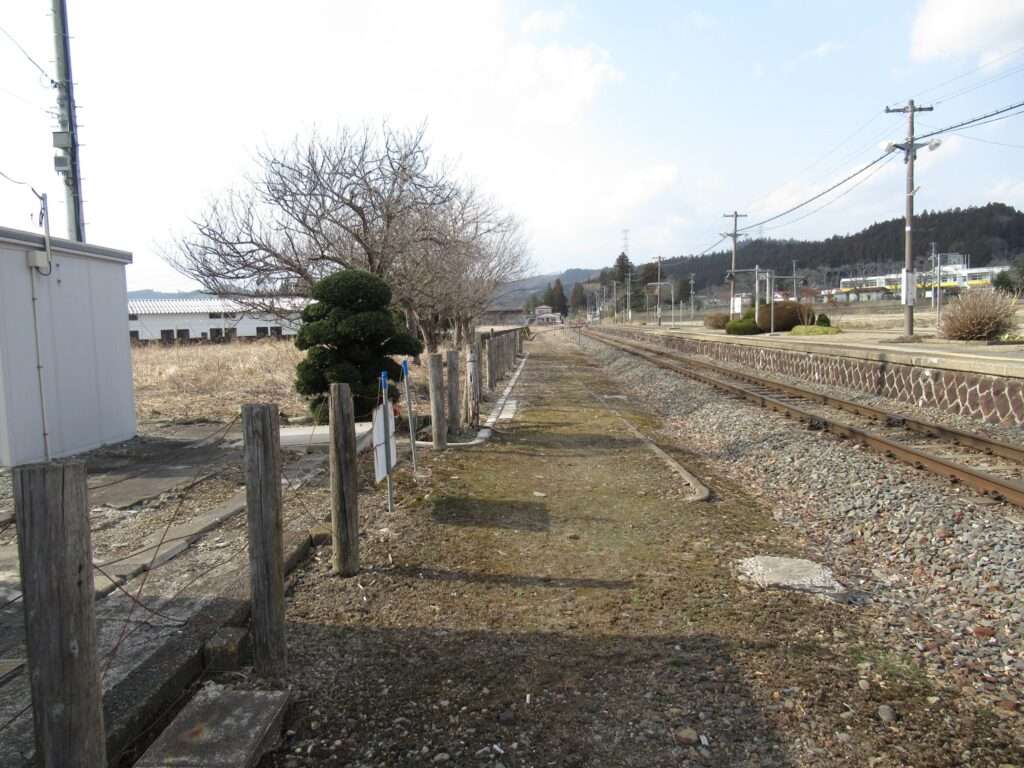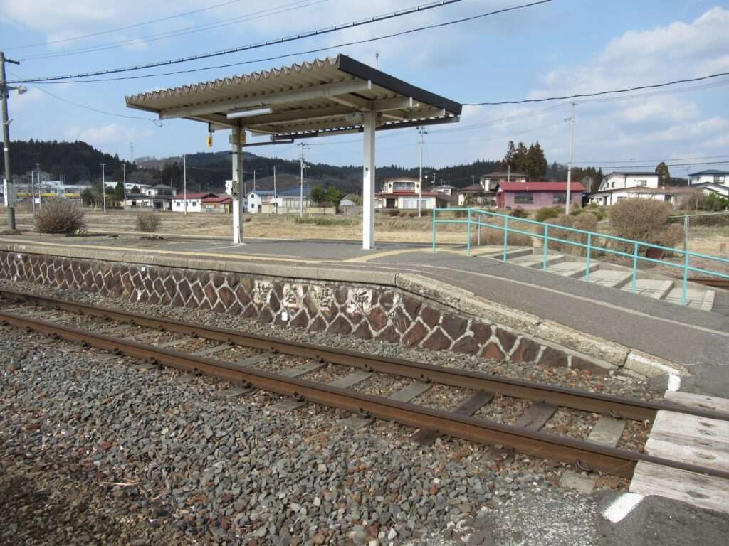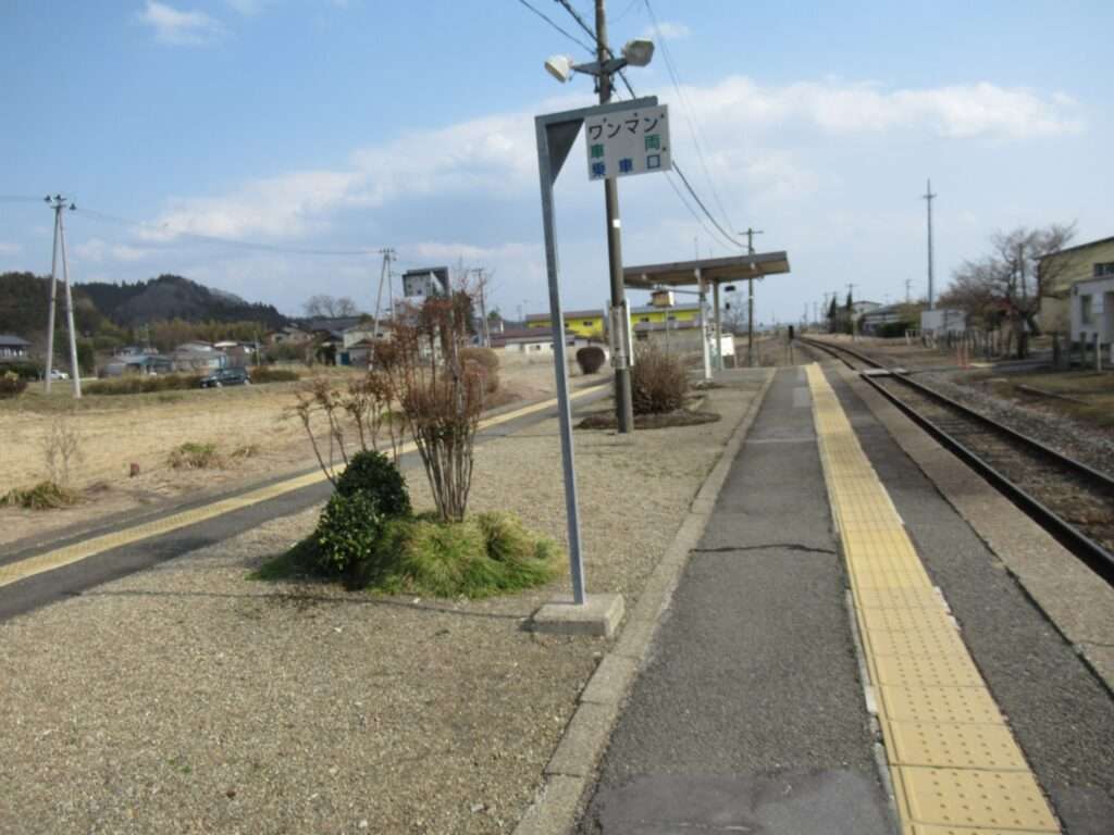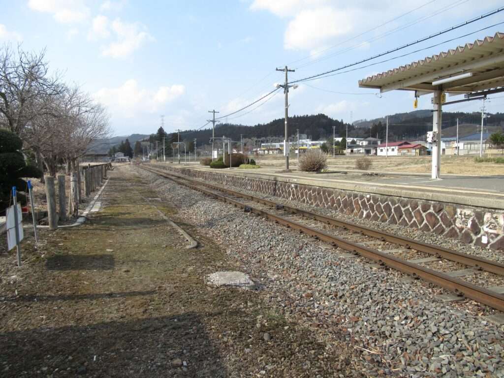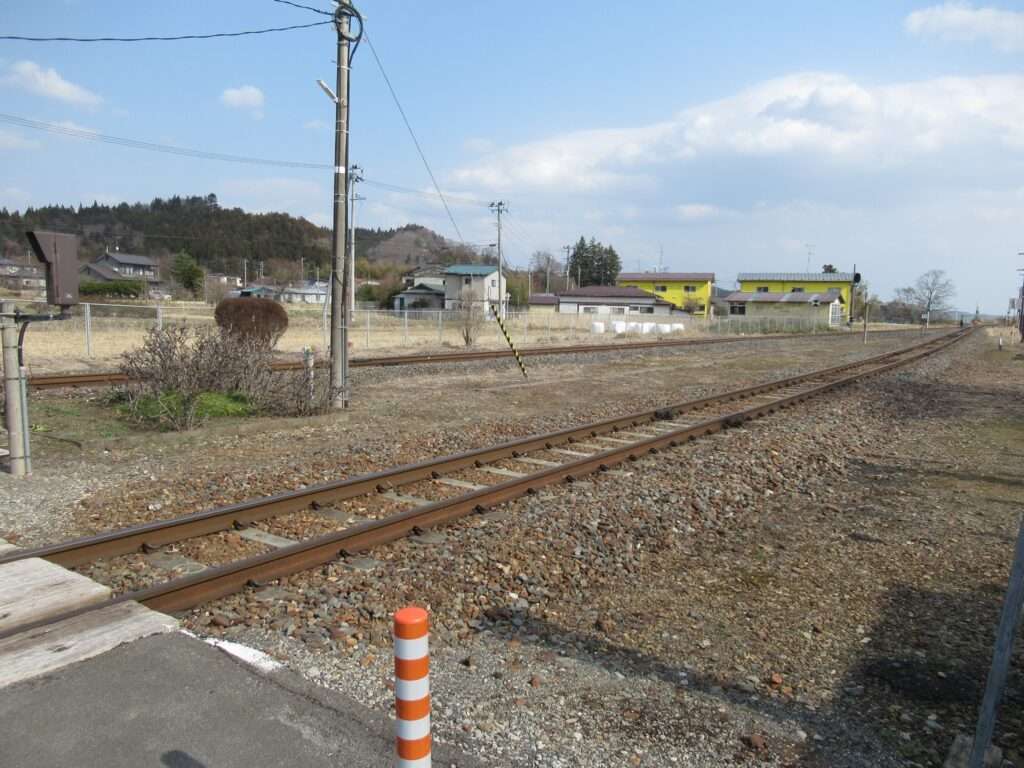 全線非電化単線の路線、奥の細道湯けむりラインこと陸羽東線の池月駅でございます。列車交換可能な島式1面2線の地上駅で、かつての貨物ホームと引込線が残っております。平屋の駅舎がある無人駅で、駅舎とホームは遮断機等のない構内踏切で連絡しております。