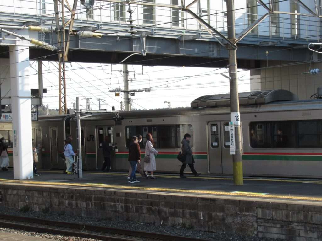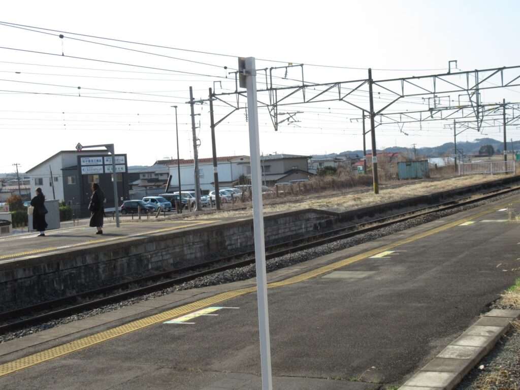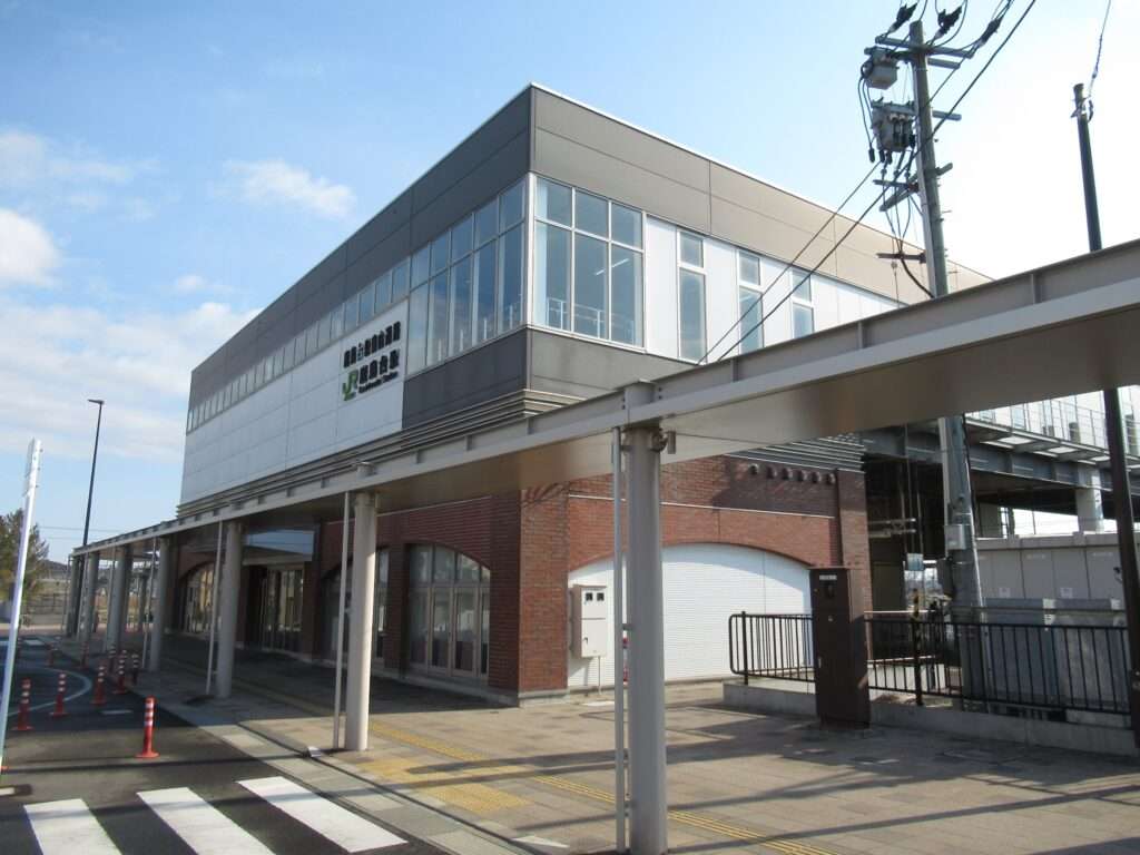 東北本線の鹿島台駅でございます。複線電化区間にある、単式島式複合型の2面3線の、いわゆる国鉄型配線に加えてホームのない側線が1本ある地上駅で、2015年(平成27年)供用開始された東西自由通路となっている跨線橋の中に改札がある橋上駅となっております。宮城県鹿島台商業高等学校などの最寄り駅となっております。