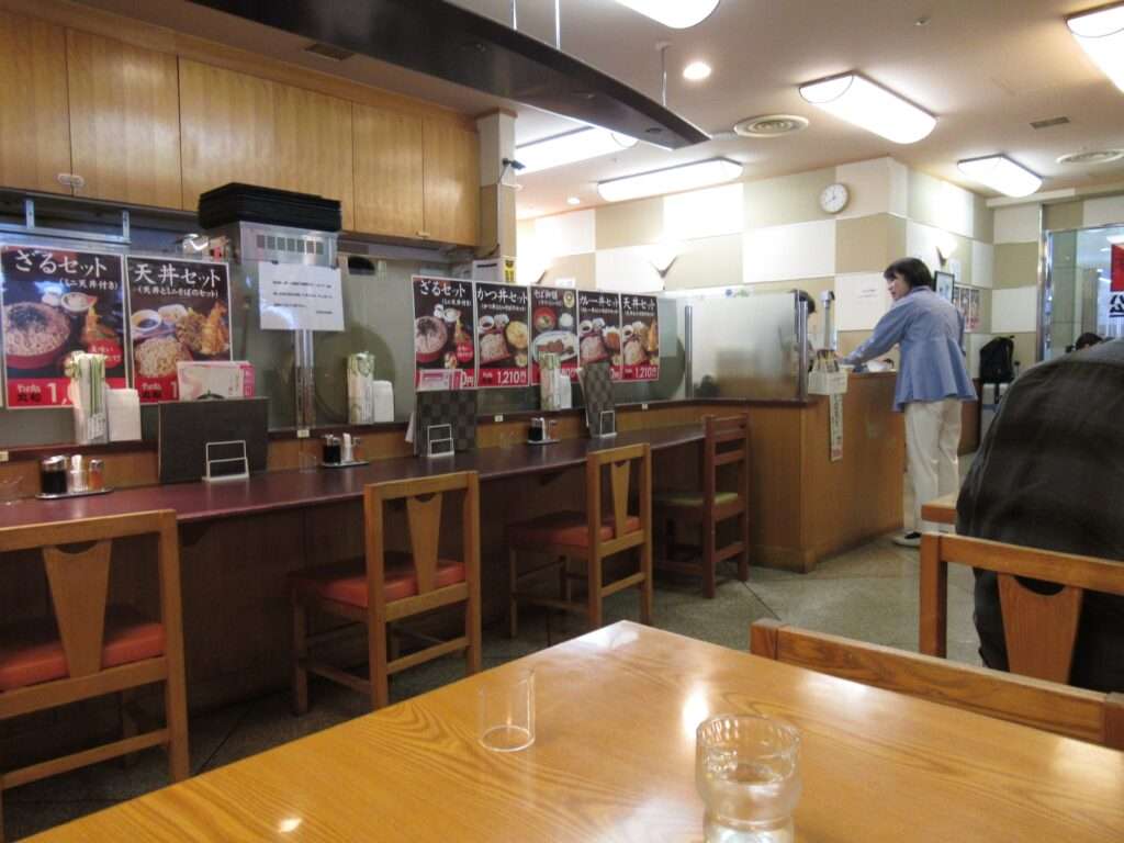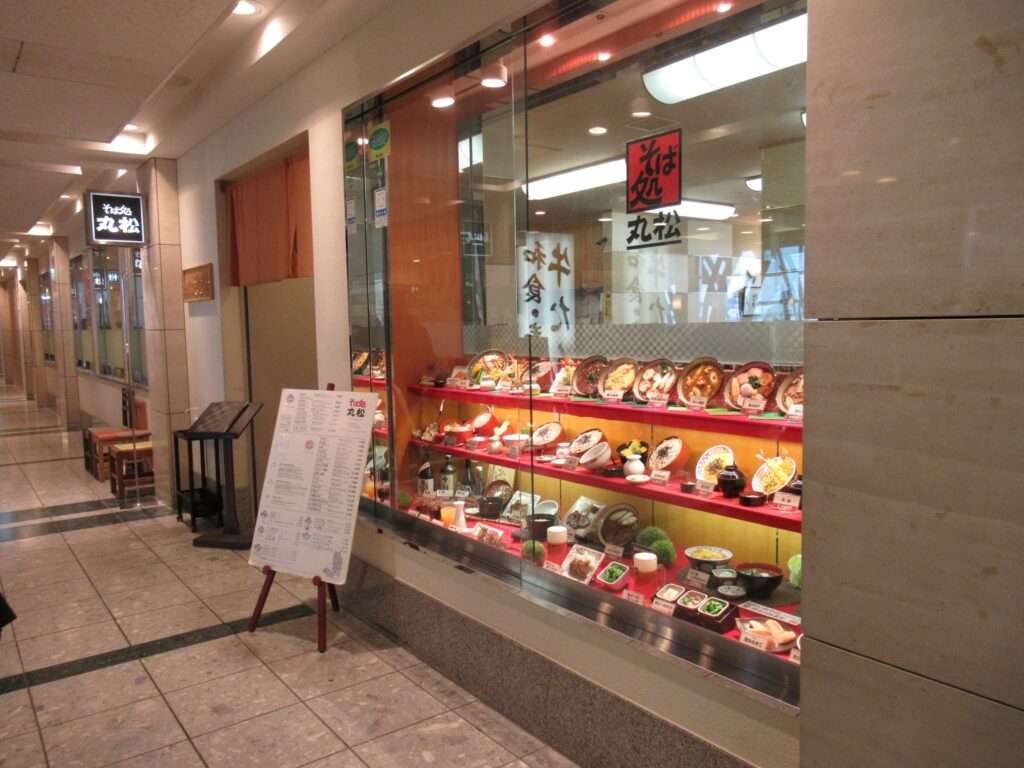 仙台空港ターミナルビル内で、フライトの前のランチでございます。そば処丸松にて天丼と蕎麦のセットメニューですわ。