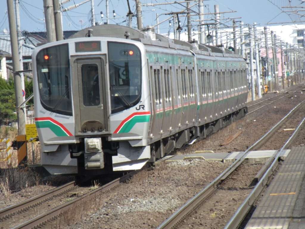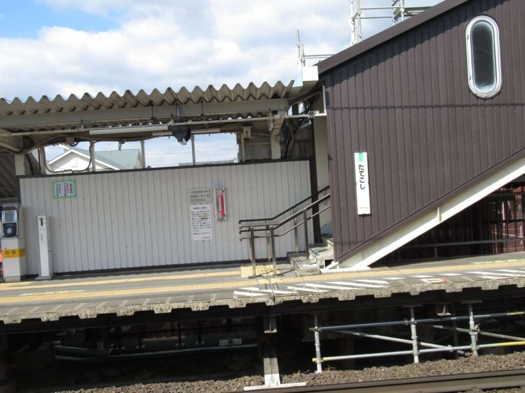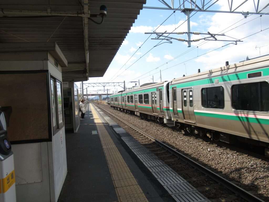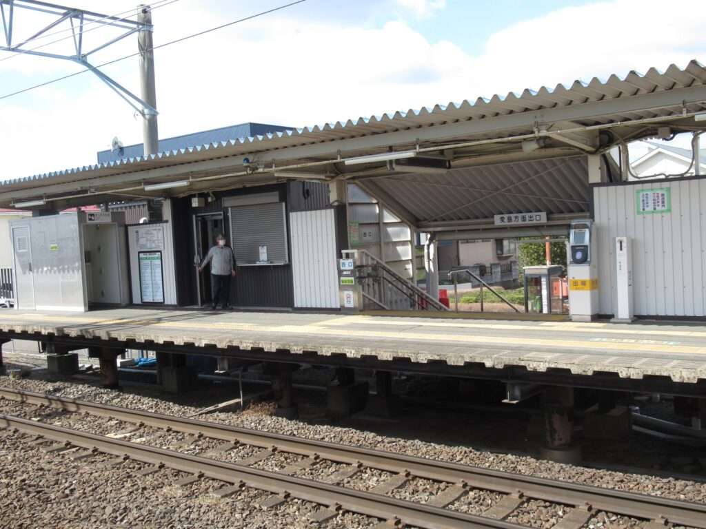東北本線の館腰駅でごさいます。岩沼駅から直通で乗り入れる常磐線の列車も停車いたします。複線電化区間にある相対式2面2線の地上駅で、駅舎はなく両ホームに出入口があり、ホーム間は上屋付きの跨線橋で連絡しております。無人駅の様に構造の駅ですが、業務委託駅となっております。