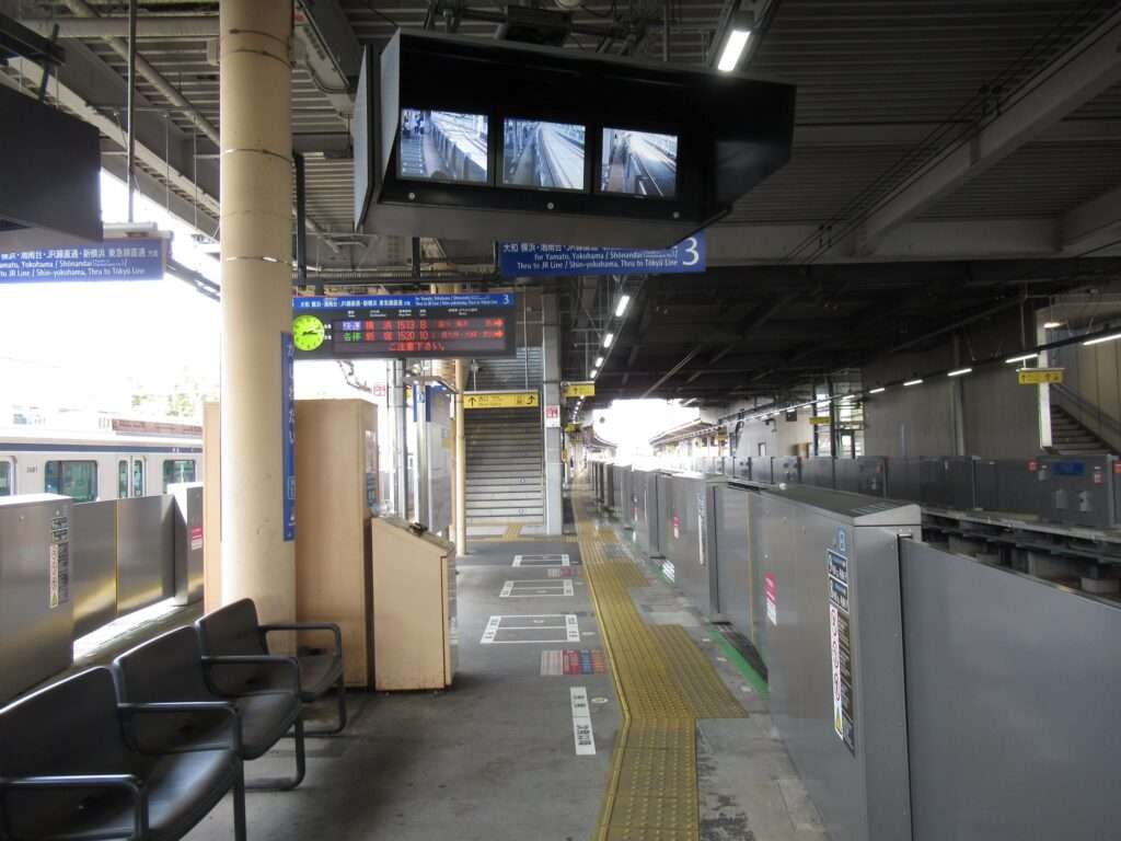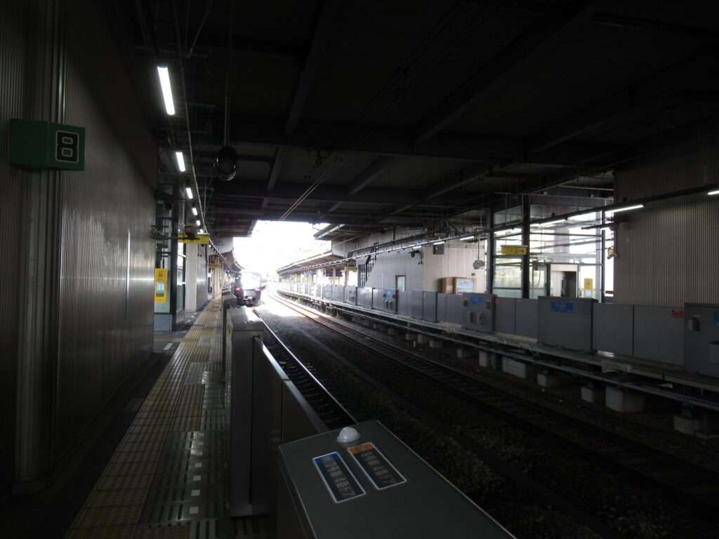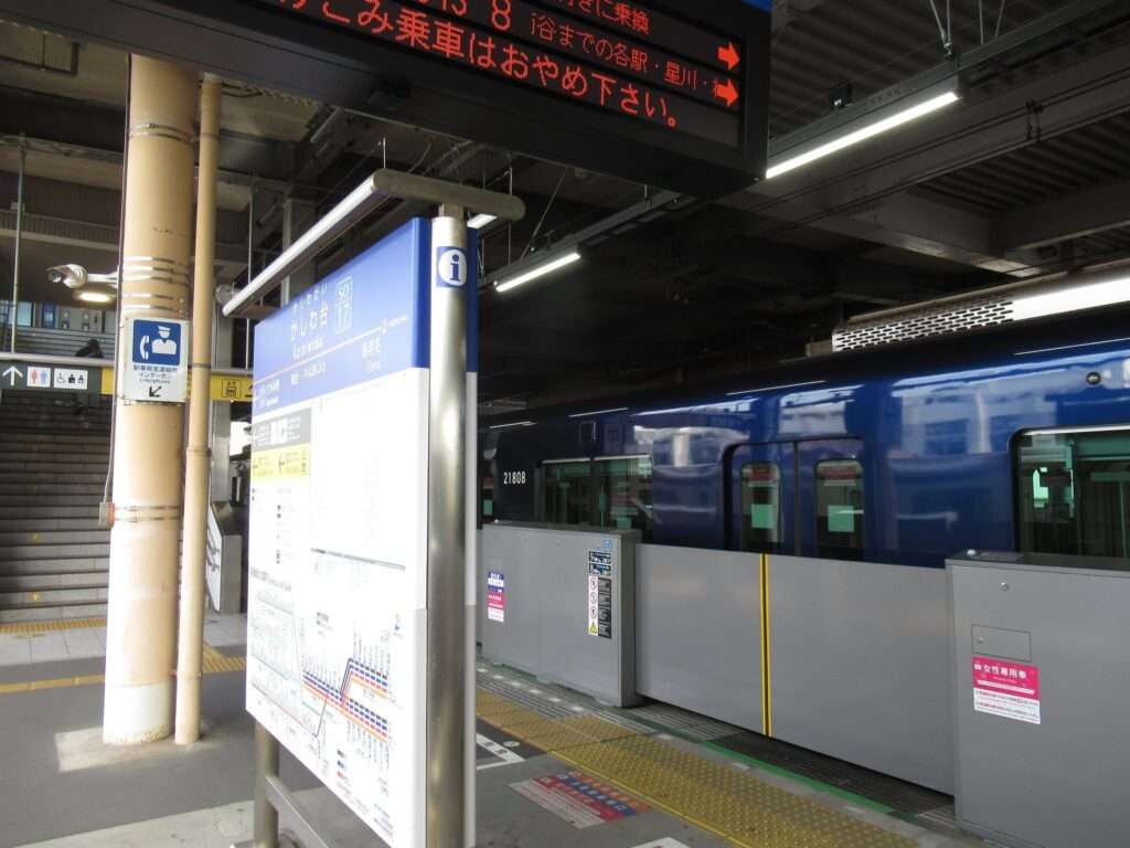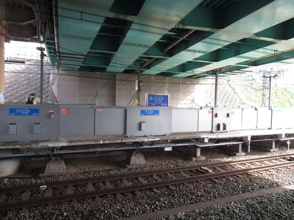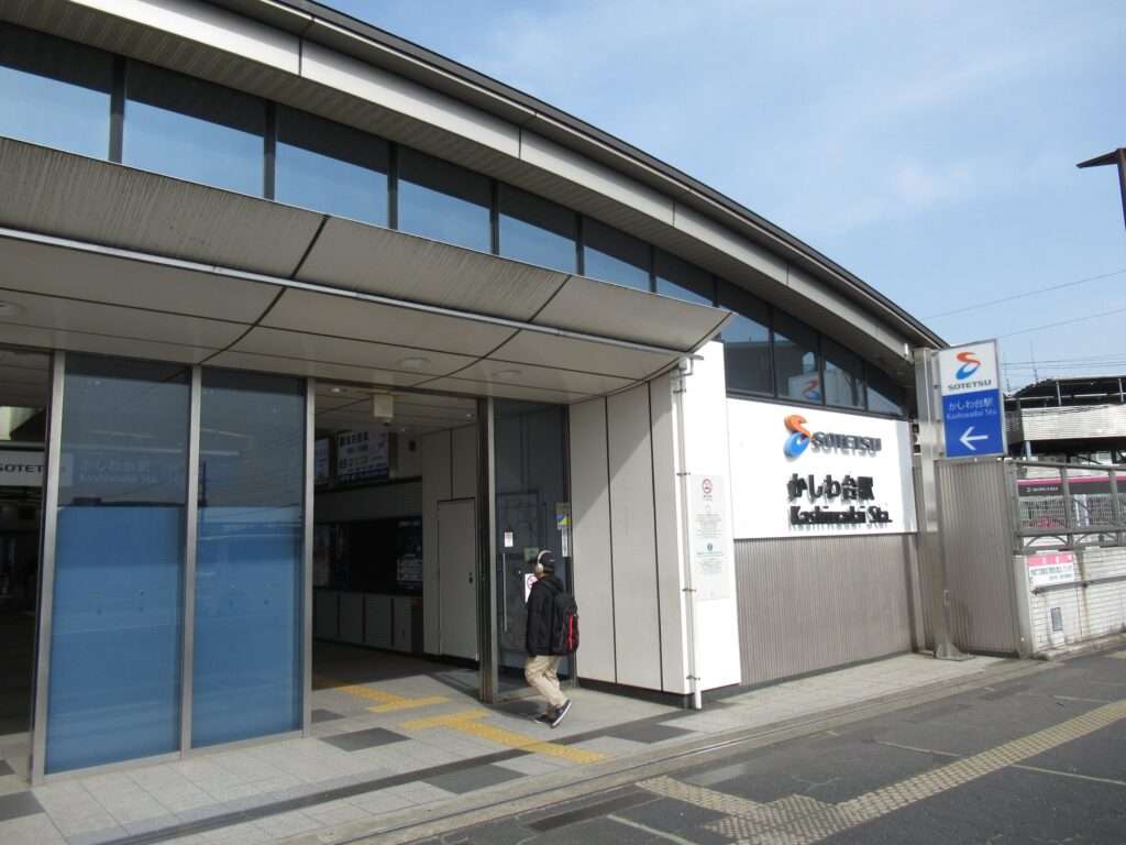 相模鉄道本線のかしわ台駅でございます。複線区間にある島式2面4線の地上駅で、西口は橋上駅舎、東口は地上駅舎となっております。車両基地および車両検修施設のかしわ台車両センターが構内にございます。そのため、東口へは350mほどある通路になっております。