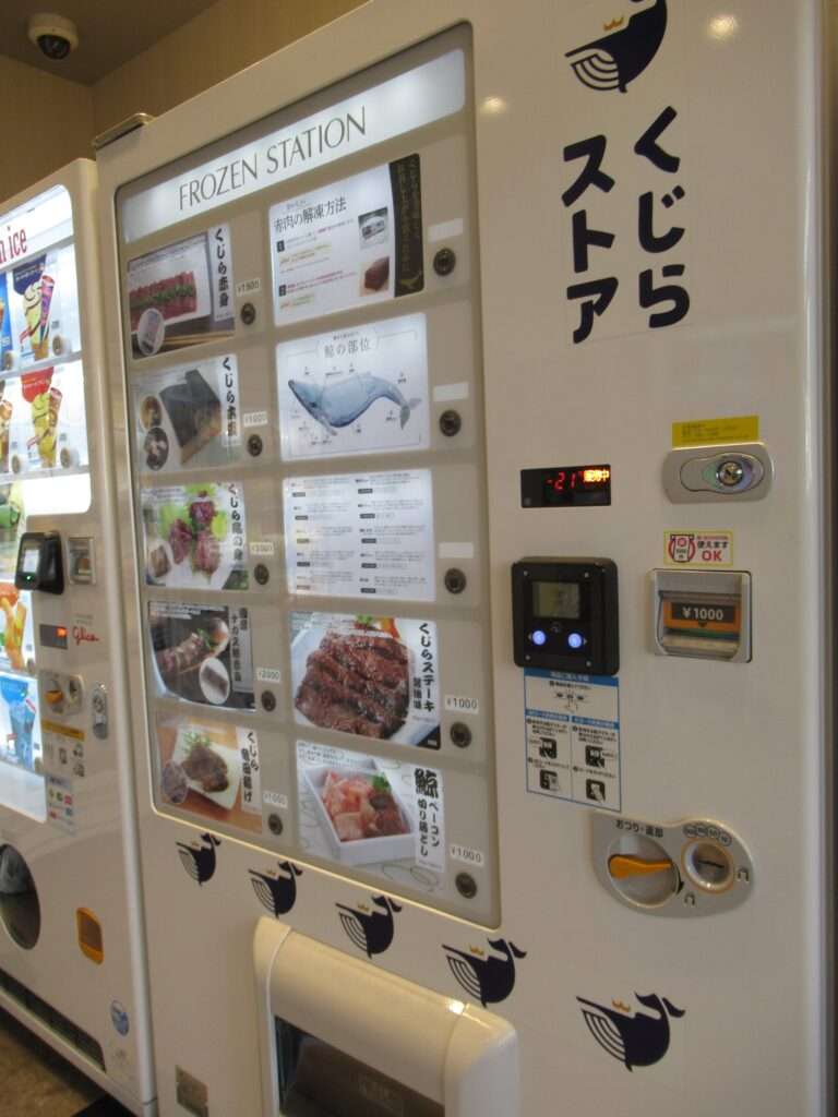 相模鉄道本線の瀬谷駅の改札付近にございました自販機コーナーなのでございますが、何と鯨肉の自動販売機があったのでございます。これは初めてみましたよ~、そこの奥さん(←何処の奥さん?)。