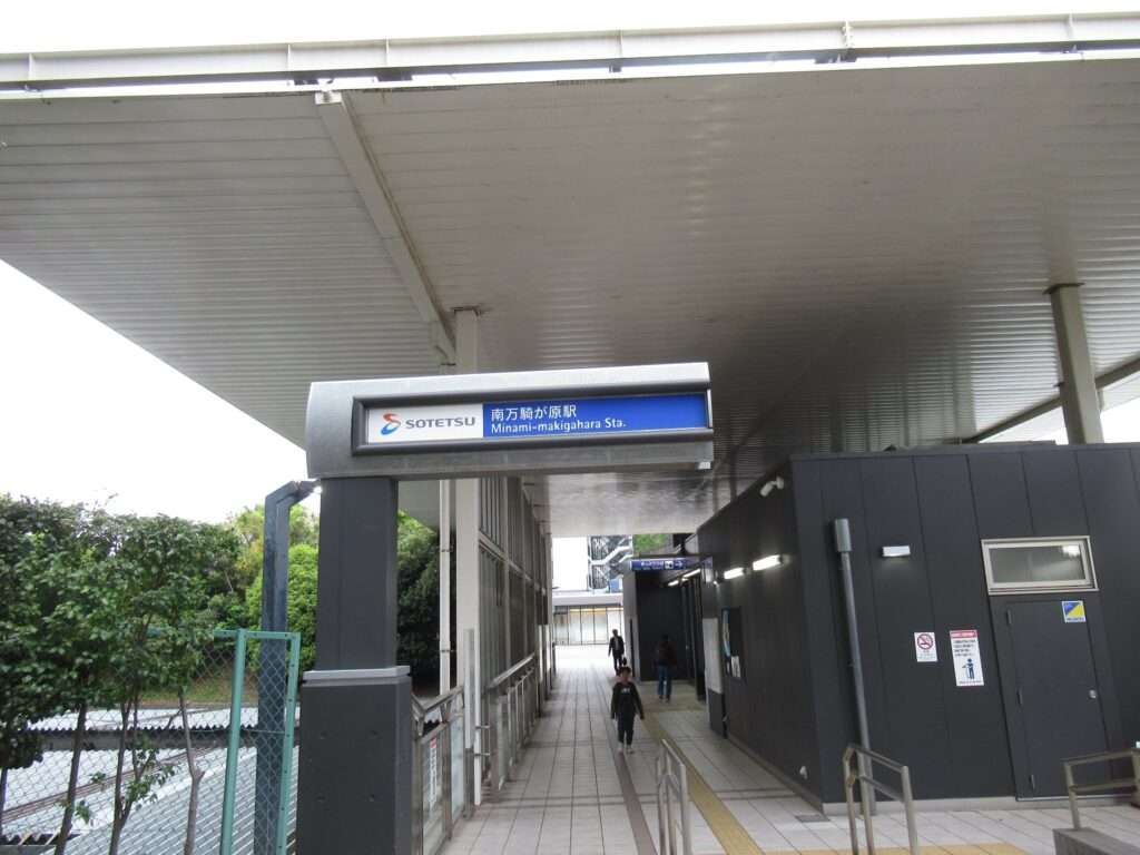 相模鉄道相鉄いずみ野線の南万騎が原駅でございます。掘割の中に敷設されている複線区間にある相対式2面2線の地上駅で、自由通路になっている跨線橋に改札がある橋上駅となっております。周辺は一戸建てと小規模マンションで構成されている住宅地でございます。