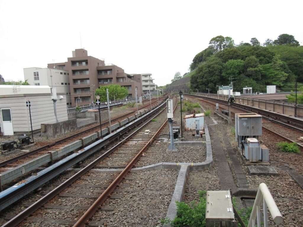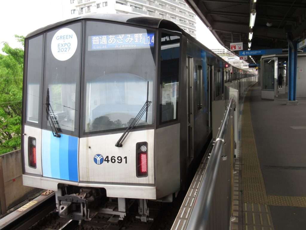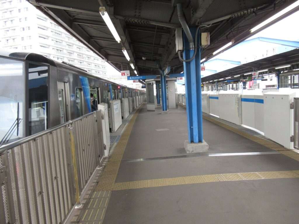 横浜市営地下鉄ブルーラインの上永谷駅でございます。正式には横浜市営地下鉄1号線の駅ですが、横浜市営地下鉄1号線と3号線は一体の路線ブルーラインとして運行されております。高架区間にある島式2面4線の高架駅となっております。南側に上永谷車両基地があり、乗務員交代が行われる拠点駅であるとともに日中に運行される快速と普通が緩急接続をいたします。3階にホームがあり、2階が改札口とコンコースで、ペデストリアンデッキで北側にある広場に直結しております。横浜市立南高等学校などの最寄り駅となっております。