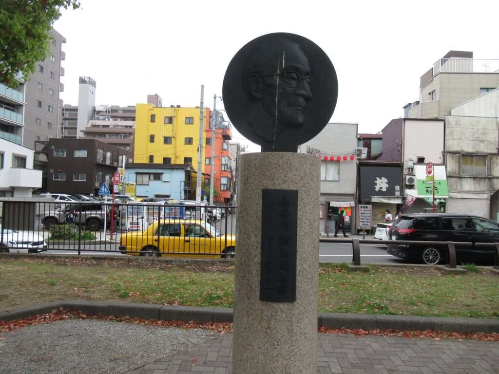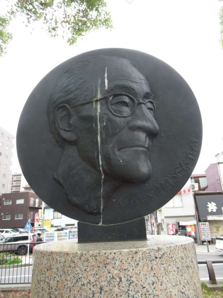 横浜市営地下鉄ブルーラインの阪東橋駅から伊勢佐木長者町駅を経由してJR関内駅付近まで続く運河を埋め立てて整備された帯状の公園、大通り公園にある横浜生まれの銅版画家、長谷川潔画伯之碑でございます。