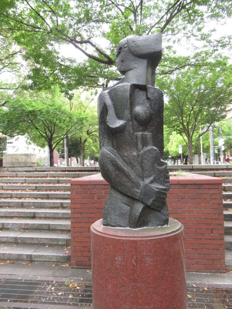 横浜市営地下鉄ブルーラインの阪東橋駅から伊勢佐木長者町駅を経由してJR関内駅付近まで続く運河を埋め立てて整備された帯状の公園、大通り公園にあるオシップ・ザッキン作「働く女」でございます。抽象化された裸婦像ですな、そこの奥さん(←何処の奥さん?)。