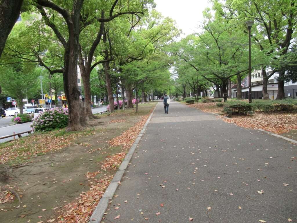 横浜市営地下鉄ブルーラインの阪東橋駅から伊勢佐木長者町駅を経由してJR関内駅付近まで続く運河を埋め立てて整備された帯状の公園、大通り公園でございます。