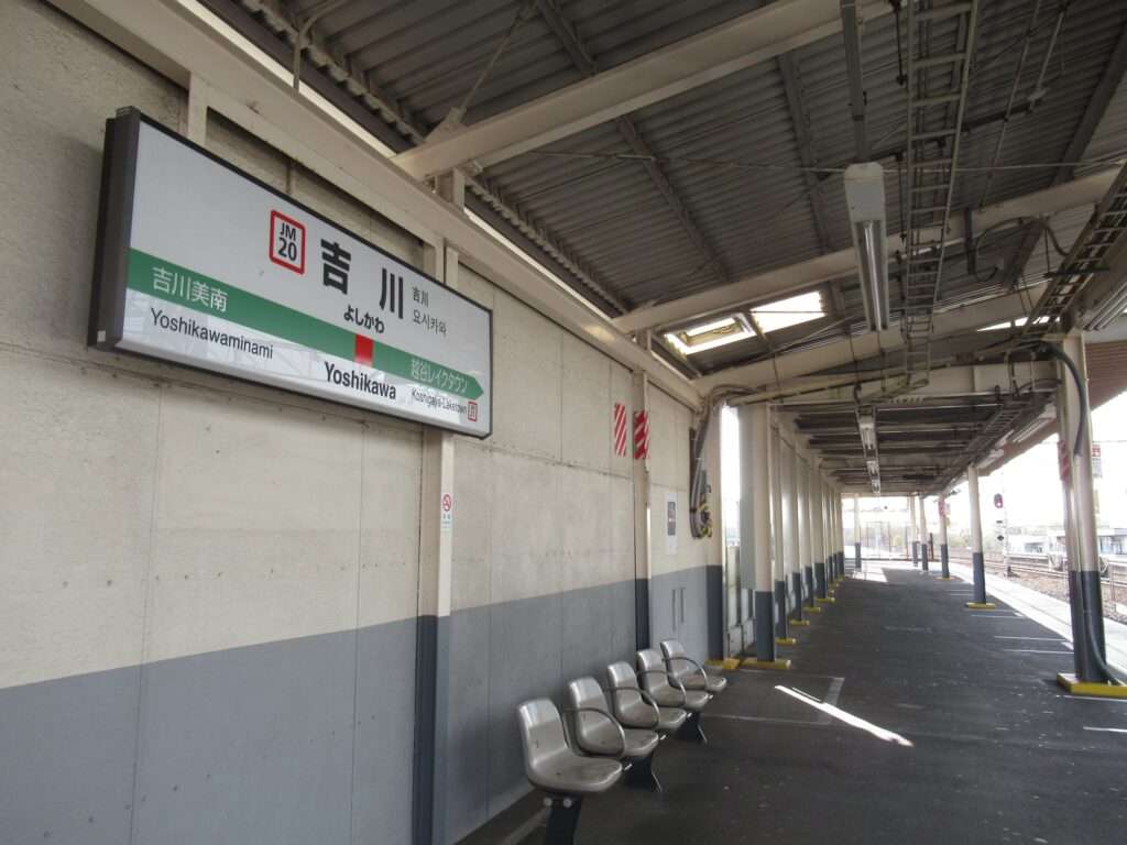 武蔵野線の吉川駅でございます。複線電化区間にある相対式2面2線の高架駅となっております。かつて武蔵野操車場があった名残で吉川美南側は上下線間の幅が広くなっております。押上駅からここを経由して野田市に至る地下鉄8号線の構想が昔からあるのですが、これが実現することは果たしてあるんでしょうかね~。