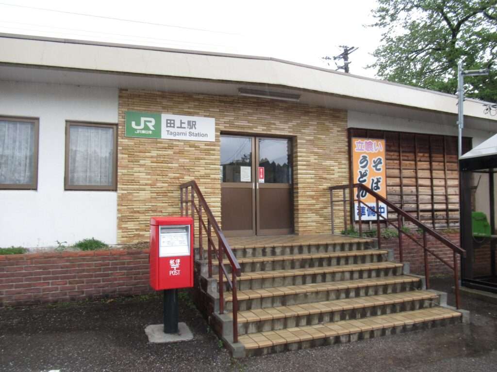 信越本線の田上駅でございます。複線電化区間にある相対式2面2線の地上駅で、平屋駅舎がある無人駅となっております。ホーム間は上屋付きの跨線橋で連絡しております。駅舎内には立ち食いそば店が入居しております。