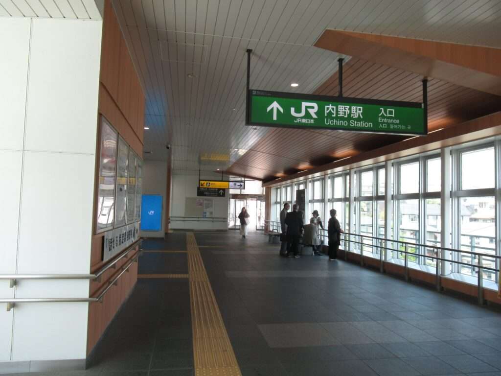 越後線の内野駅でございます。単線電化区間にある列車交換可能な相対式2面2線の地上駅で、南北自由通路に改札がある橋上駅となっております。この駅で折り返す列車の設定があり、日中の新潟方面は1時間に3本あるのに対して、吉田方面は1時間に1本の運転となり、運転本数が激減いたします。新潟大学五十嵐キャンパス、日本文理高等学校などの最寄り駅となっております。