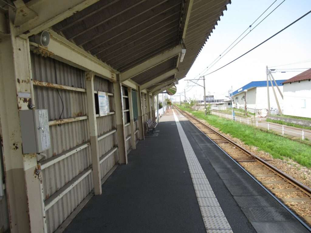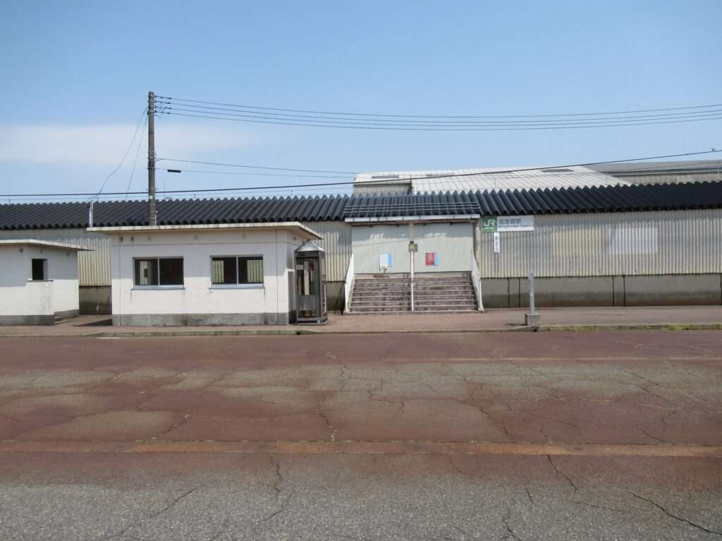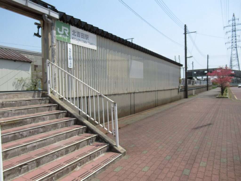 越後線の北吉田駅でございます。単線電化区間にある地上駅で、単式1面1線の棒線駅となっております。駅舎のない無人駅で、ホームの入口わきに待合所が設置されております。新潟県立吉田高等学校などの最寄り駅となっております。