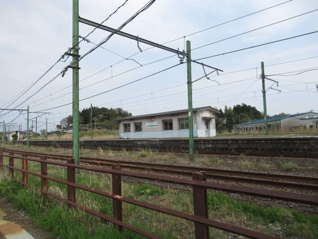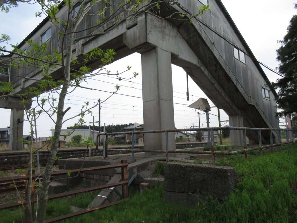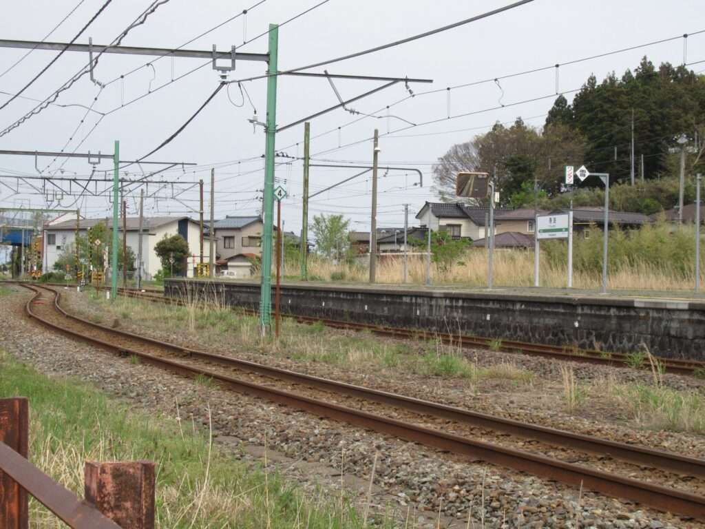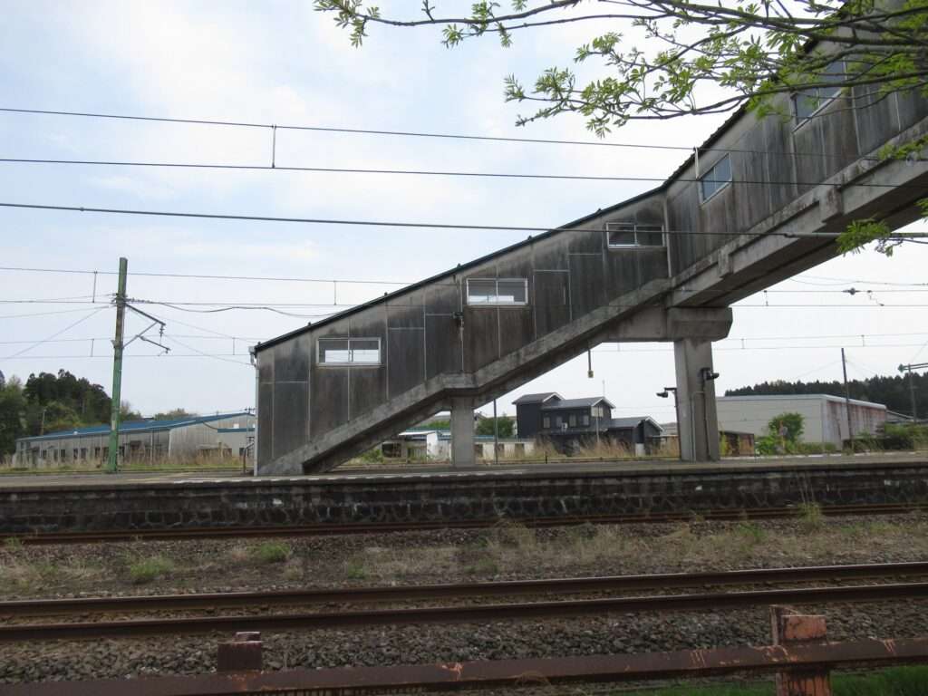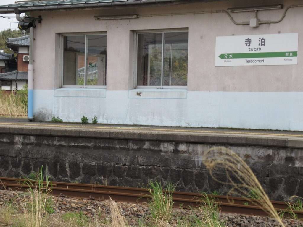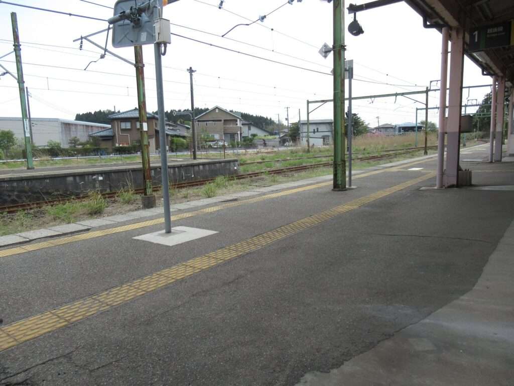 越後線の寺泊駅でございます。単線電化区間にある単式島式複合型の2面3線、いわゆる国鉄型配線の地上駅で、平屋コンクリート造りの駅舎がある簡易委託駅となっております。ホーム間は上屋付きの跨線橋で連絡しております。