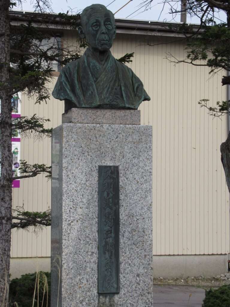 越後線の小島谷駅前広場にある、久須美秀三郎翁像でございます。胸像でございますですな。この方は越後線の前身である越後鉄道の創始者なのだそうですよ、そこの奥さん(←何処の奥さん?)。