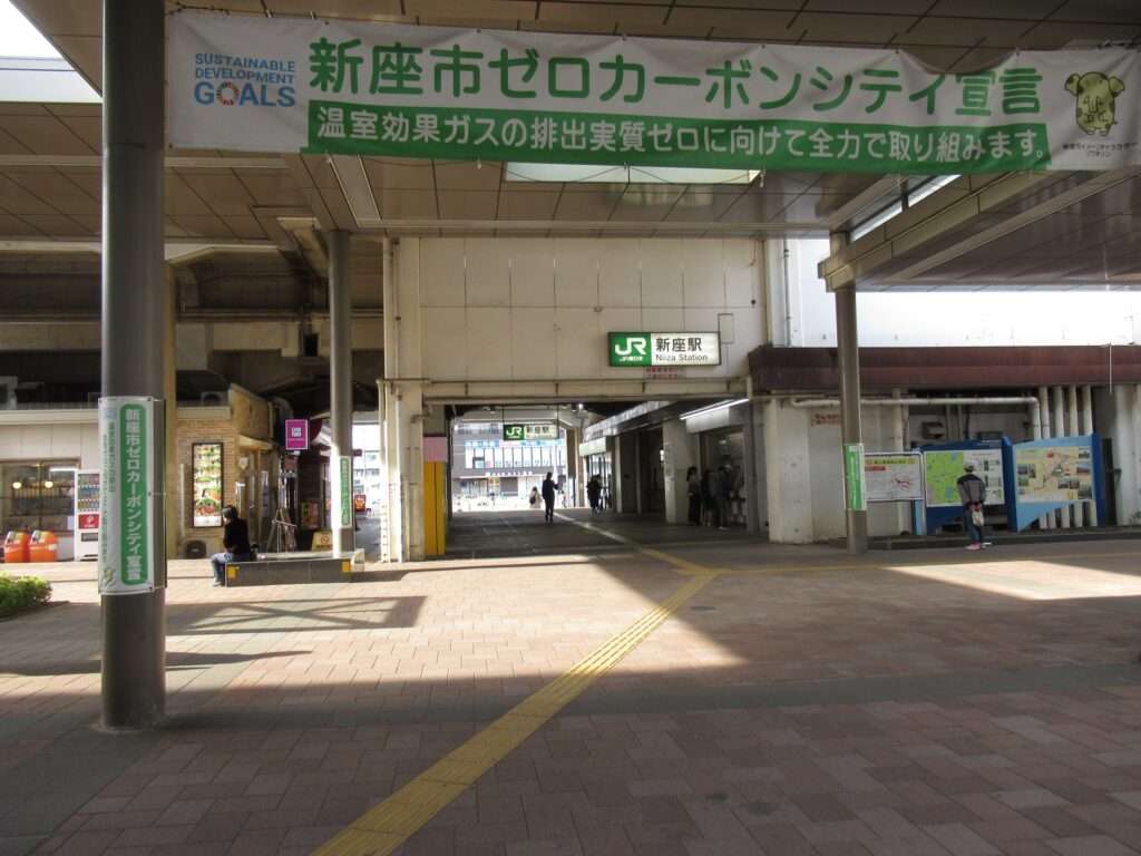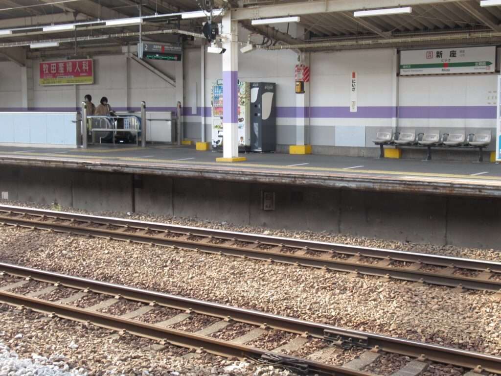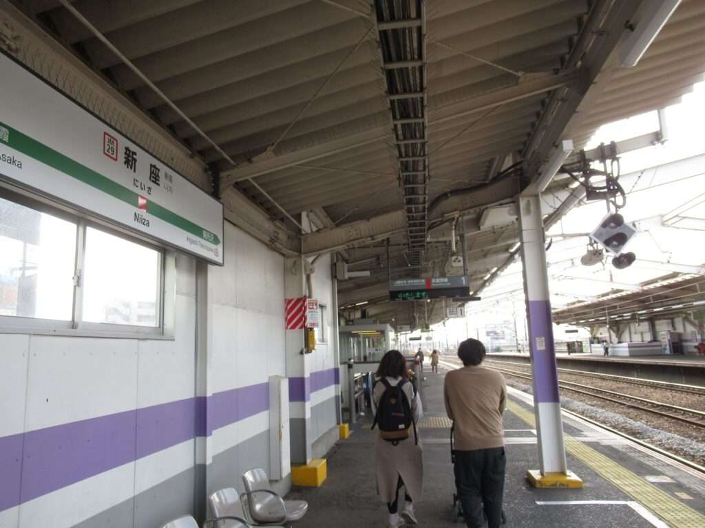 武蔵野線の新座駅でございます。複線電化区間にある相対式2面2線と中線1線がある高架駅となっております。中線は新座貨物ターミナル駅への連絡線でございます。少し離れた場所に学校が点在しており、立教大学新座キャンパス、立教新座中学校・高等学校、跡見学園女子大学新座キャンパス、西武台新座中学校・西武台高等学校、十文字学園女子大学、埼玉県立新座柳瀬高等学校などの最寄り駅となっております。