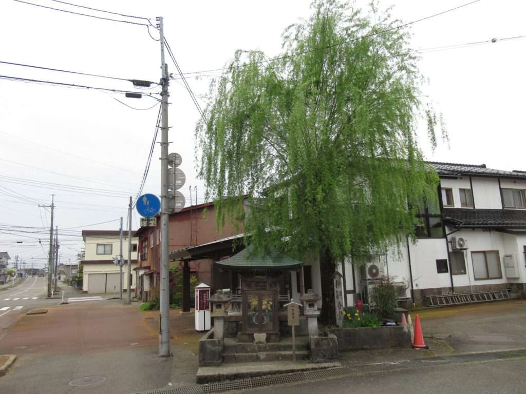 信越本線の来迎寺駅前でございます。柳の木の下に観音堂がありました。そのまんま柳観音堂でございます。こちらも1972年(昭和47年)に廃止された越後交通長岡線の駅って、きっとここら辺りが出入口だったんではないですかね、知らんけど(←知らんのかいw)。