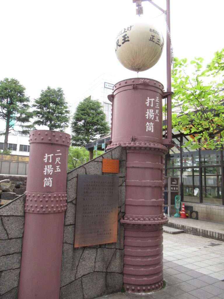 上越新幹線と在来線の信越本線および上越線の長岡駅前広場にある、長岡まつり花火大会で使われた正三尺玉と二尺玉の打揚筒でございます。2002年(平成14年)までの70年間も現役で使われていたというシロモノなんですってよ、そこの奥さん(←何処の奥さん?)。