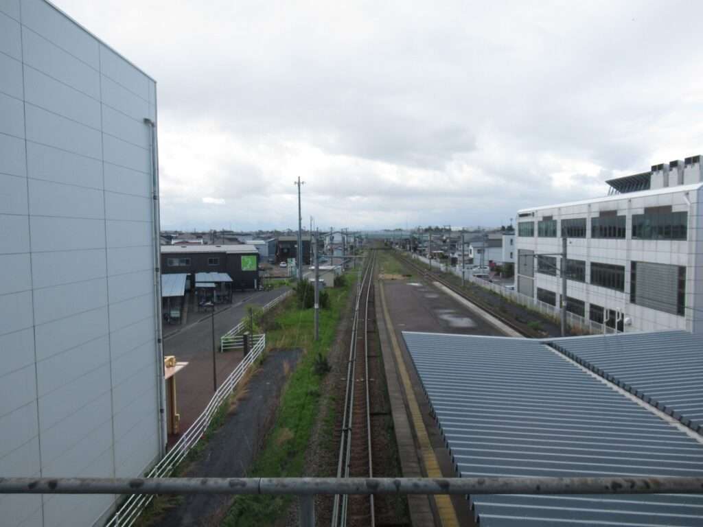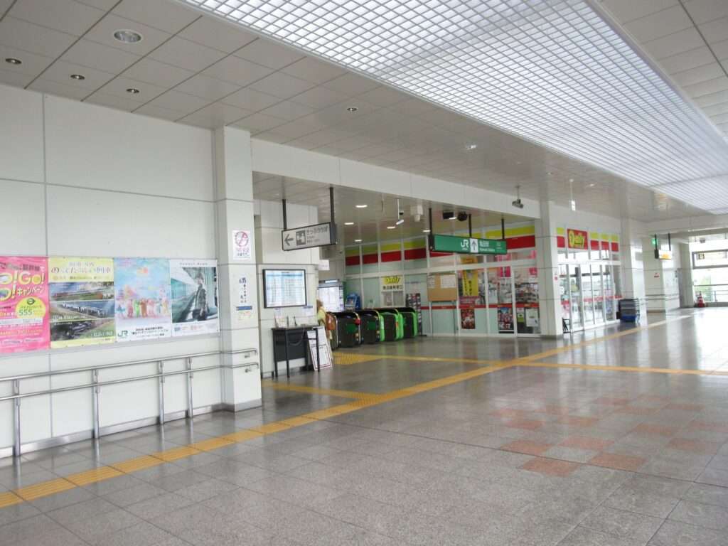 信越本線の亀田駅でございます。複線電化区間にある島式1面2線の地上駅で、東西自由通路の中に改札がある橋上駅となっております。業務委託駅で、新潟県立新潟向陽高等学校、新潟明訓中学校・高等学校などの最寄り駅となっております。