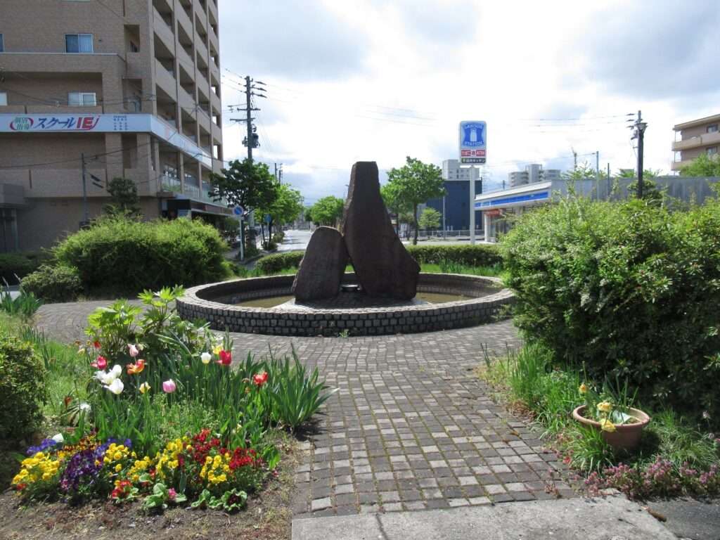 白新線の東新潟駅前にある噴水池モニュメントでございます。大小の石が寄り添って並んでおります。駅を背にして正面から見る分には分かりませんでしたけれど、逆側から駅舎方向を望むと「人」に見えますですな、そこの奥さん(←何処の奥さん?)。