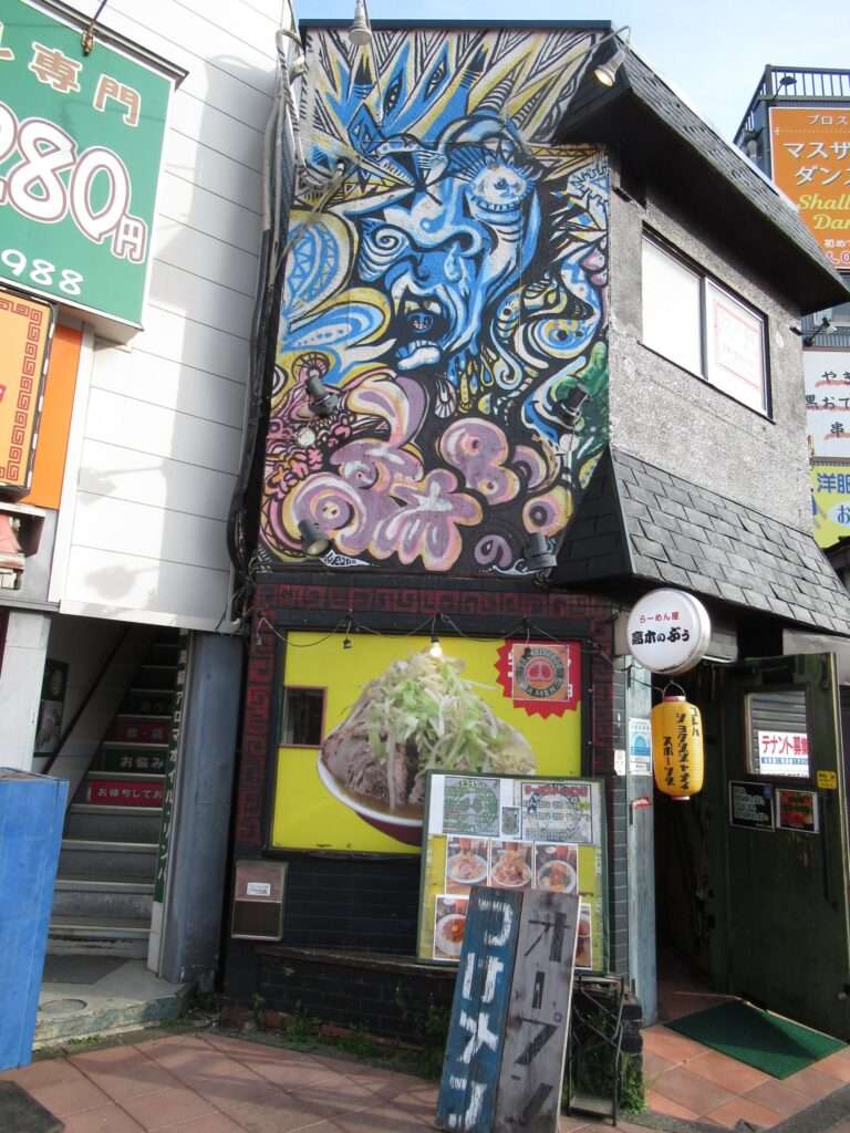 新秋津駅前で辺りを見回しておりまして、サイケデリックかつホラーチックなイラストが目に付きましたので近寄って見まするに、ラーメン屋「高木のぶぅ」なるユニークなお店でございました。店名もユニーク、メニューもユニークなお店みたいですな。コレハショクジジャナイスポーツダ、なんでそうです。ワタクシのランチタイムからは時間帯がずれてたので今回入店は致しませんでした。入店するってえとトモグイですがな~、そこの奥さん(←何処の奥さん?)。