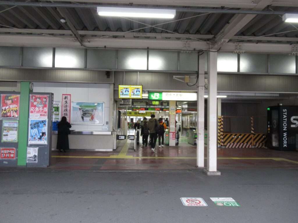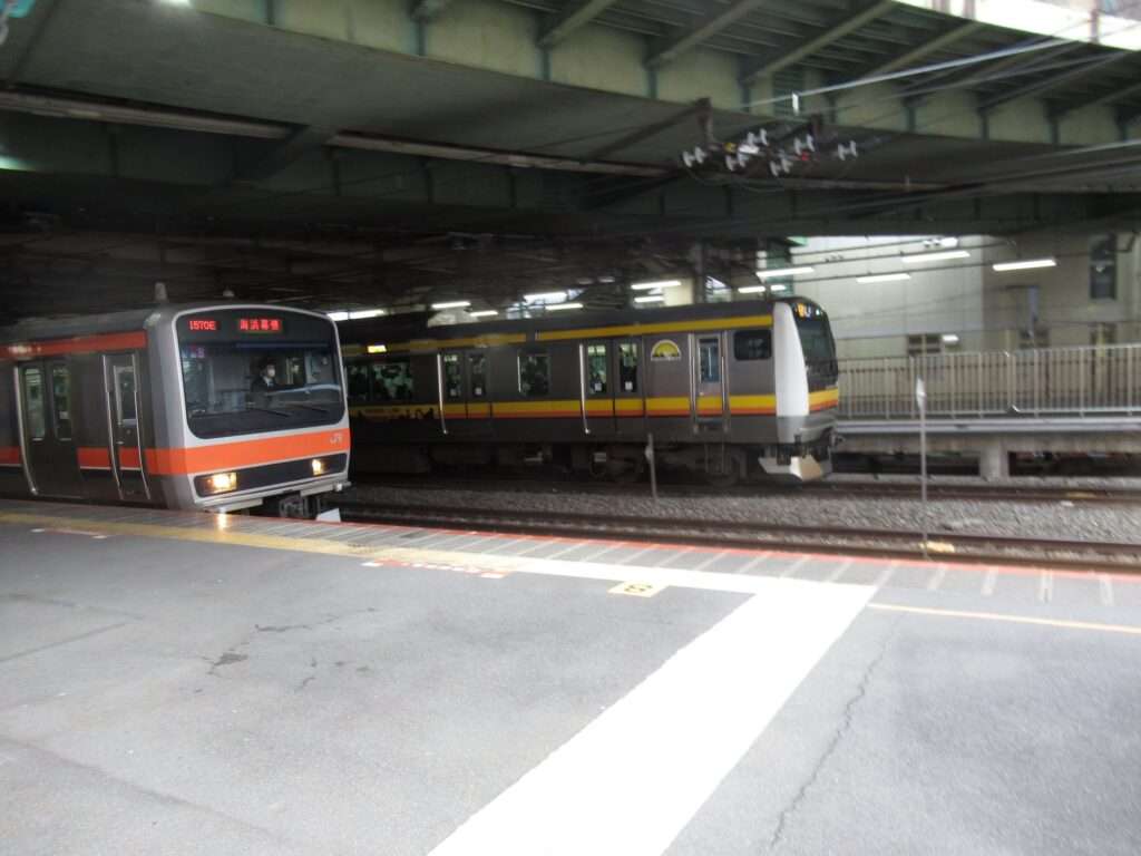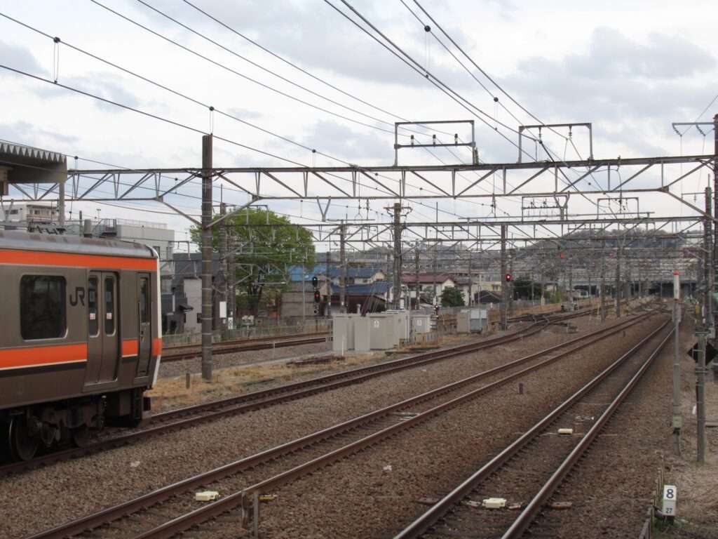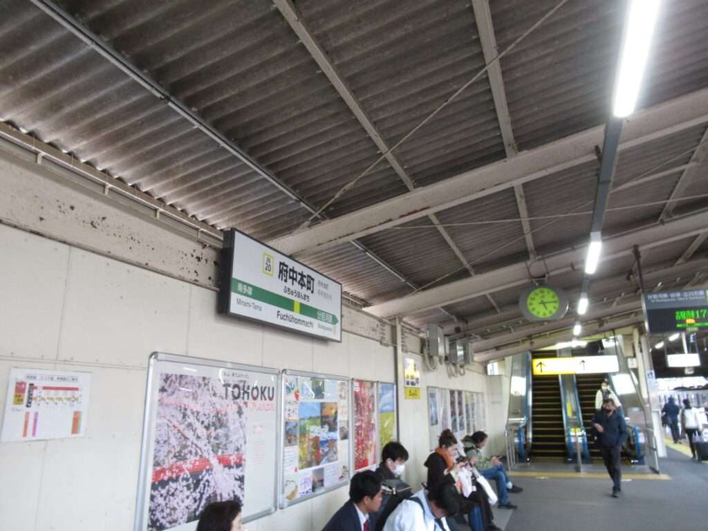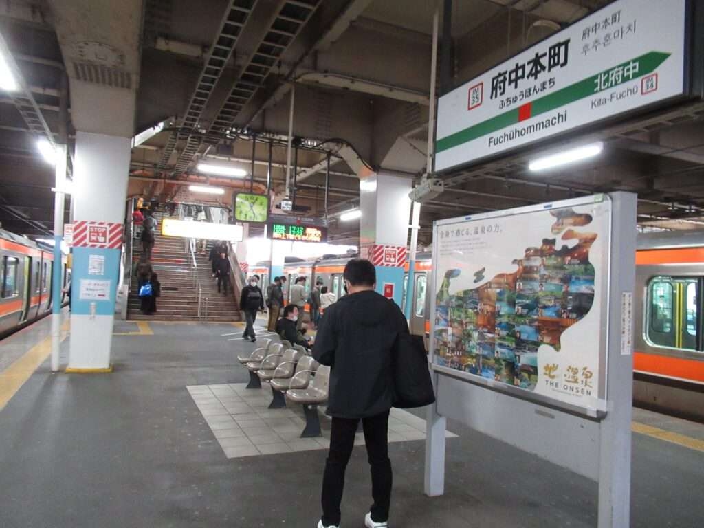 南武線と武蔵野線の府中本町駅でございます。両線ともが複線電化区間にあり、南武線の相対式2面2線の間に武蔵野線の島式1面2線とその外側に貨物線である武蔵野南線のホームのない通過線が2線ある合計3面4線と通過線2線の地上駅となっております。武蔵野線の定期旅客列車はここで折り返し致します。駅舎改札は線路を跨いで横断している高架道路に面しており、ホームが地上部にある橋上駅となっております。至近にある東京競馬場での競馬開催時のための臨時改札口が設置されております。