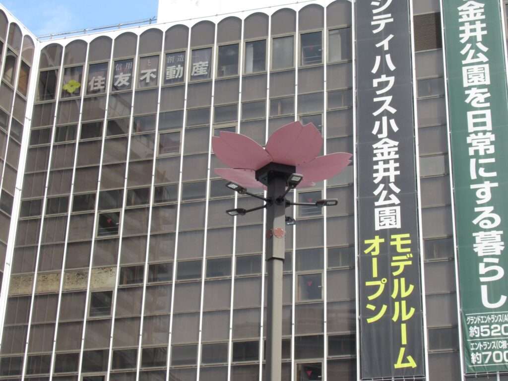 武蔵小金井駅北口にある時計塔や街灯にはサクラの花がデザインされております。小金井市周辺は古くから名高いサクラの名所で、小金井桜は名勝なんですな、そこの奥さん(←何処の奥さん?)。