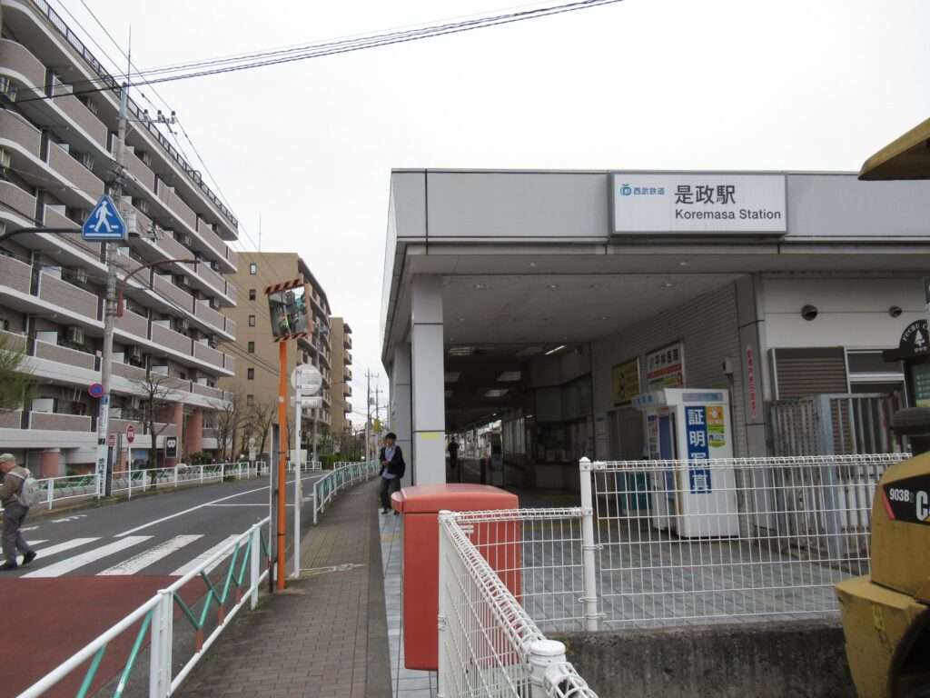 是政駅(これまさえき)は、東京都府中市是政五丁目にある西武鉄道多摩川線の駅である。同線の終着駅。当駅から東京競馬場への延伸が検討された事があるが、構想で終わっている。多摩都市モノレールの構想路線として、当駅から唐木田方面への路線が構想されているが、具体化には至っていない。単式ホーム1面1線を有する地上駅である。簡易型PASMO読取改札機設置。改札内にはバリアフリーの多機能トイレ、AEDが備えられている。駅に入る手前で本線から留置線が一線分岐しており、その先には線路保守用機械への資材載積場がある。多摩川線南側に平行する多摩川沿いには工場と河川敷に野球場と親水公園がある。駅北口は小さな商店街となっており、道路の拡張延伸工事により、マンションとスーパーマーケットが目立つようになってきた。 北は、府中是政郵便局、マインズ農業協同組合是政支店や是政八幡神社があり、約1km離れた所には是政文化センター、中央自動車道府中バスストップがある。