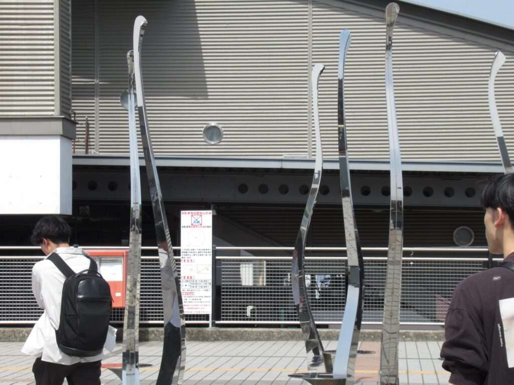 小田急電鉄小田原線の秦野駅南口広場には多くの現代アート風のモニュメントなどが設置されております。その中の一つ、「空の椅子」でございます。今村巖さんという方の作品でございます。