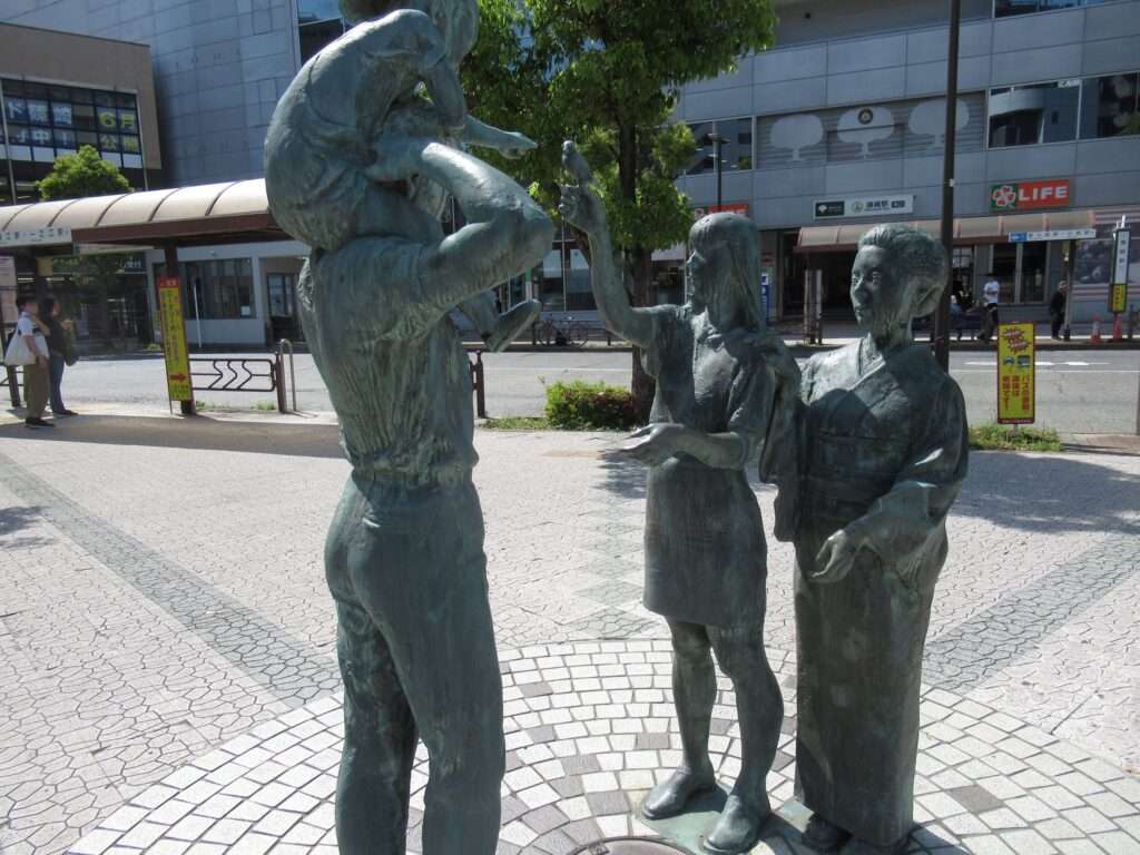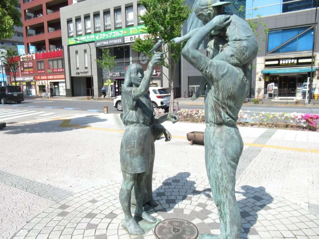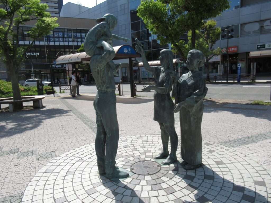 都営地下鉄新宿線の篠崎駅前、交通広場にある三世代家族の像、ふれあいでございます。ワタクシは元々隣駅に長く住んでおり、ここにも幾たびか来ているんですが、この像がここにあることには今まで気が付いておりませんでしたですな。なんでやろ?