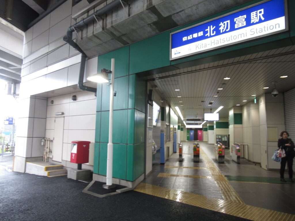 北初富駅(きたはつとみえき)は、千葉県鎌ケ谷市初富にある、京成電鉄松戸線の駅である。付近に北総鉄道北総線の高架が並行している。新京成線(当時)の新鎌ヶ谷駅が開業する前は、同線に乗り入れていた北総・公団線(当時)の分岐駅でもあり、共同使用駅でもあった。相対式ホーム2面2線の高架駅である。高架駅舎のデザインは「『共生』をテーマに、暖色白色系の外装パネルの上部に、風や雲のイメージをガラス開口部で表現。イメージカラーは緑色。2014年(平成26年)2月22日までは、現在地から国道464号を挟んで約200メートル西側(松戸寄り)の、鎌ケ谷市北中沢一丁目18番25号に位置し、2面2線の相対式ホームを持つ橋上駅であった。バリアフリーに対応しているのは、南口出入口とコンコースを結ぶエスカレーターのみであった。当駅を含むくぬぎ山 – 鎌ヶ谷大仏間で高架化工事が実施され、工事の進捗に合わせて、2014年2月23日に線路を20メートル南側の仮線へ移設するとともに、約200メートル東側(新鎌ヶ谷寄り)の鎌ケ谷市北初富4番6号に仮駅が設置された。移設後は改札口と上りホームを結ぶエレベーターと下りホーム地下道と同ホームを結ぶエレベーターが設置されていた。また、多機能トイレも設置された。2017年(平成29年)10月21日には下り線(京成津田沼方面)が高架化され、ホームも移設されたが、新たなホームも仮駅と同じ場所になった。このため、移設前は駅名と所在地が一致しなかったが、移設後に一致することとなった。有人駅だが、2019年12月1日から駅監視システムを導入。22時から翌朝7時までの間は駅員が不在となる。当駅を降りて隣の新鎌ヶ谷駅には徒歩約10分程度で行くことが可能。当駅と新鎌ヶ谷駅の間は800メートルと近く、当駅ホームから新鎌ヶ谷駅の駅舎を確認することが出来る。また2つ先の初富駅にも、当駅から国道464号を歩いて約10分程度(距離にして約1キロメートル)で行くことも可能。
