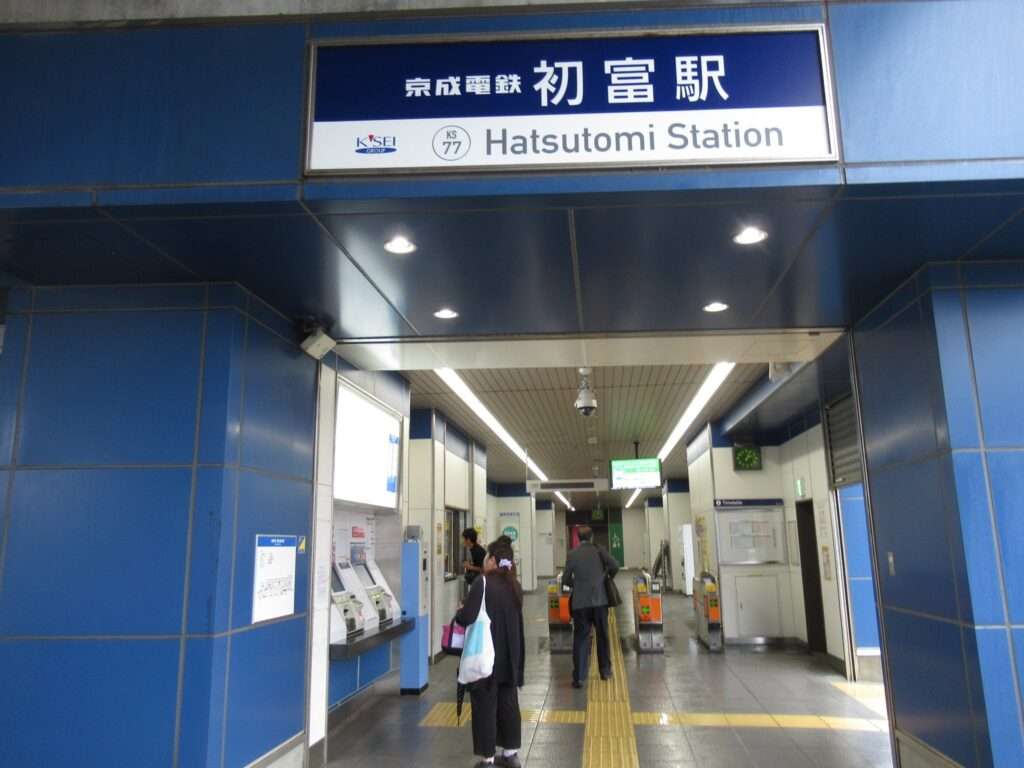 初富駅(はつとみえき)は、千葉県鎌ケ谷市中央一丁目にある、京成電鉄松戸線の駅である。島式ホーム1面2線の高架駅。かつては島式ホーム1面2線の地上駅で、改札とホームの間に構内踏切が存在した。高架化工事の進捗に伴い、2013年2月3日に2番線ホームを仮線・仮ホームに切り替えられ、同時に地下通路とエレベーターが設置された。また2014年5月18日に1番線ホームを仮線・仮ホームに切り替えた。10月5日には仮駅舎に切り替えられた。高架駅舎のデザインは「『文化』をテーマに、日本の伝統文化の一つである折り紙や空高く飛ぶ紙飛行機をモチーフとしたガラス開口部がアクセントとなっている、落ち着きのあるデザイン。イメージカラーは青色。2019年12月1日より駅監視システムを導入。22時から翌朝7時までの間は駅員が不在となる。周辺には複数の駅が近接しており、南側には東武野田線(東武アーバンパークライン)の鎌ヶ谷駅、北側には隣の新鎌ヶ谷駅、北西側(国道464号線経由)には2駅隣の北初富駅が立地し、それぞれ当駅から徒歩10分から15分程度(距離にして1キロメートル前後)となっている。駅の西側には国道464号、千葉県道8号船橋我孫子線(船取線)、千葉県道57号千葉鎌ケ谷松戸線が走る。駅前の県道を挟んだ向かい側にはショッピングプラザ鎌ヶ谷がある。
