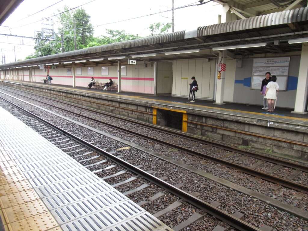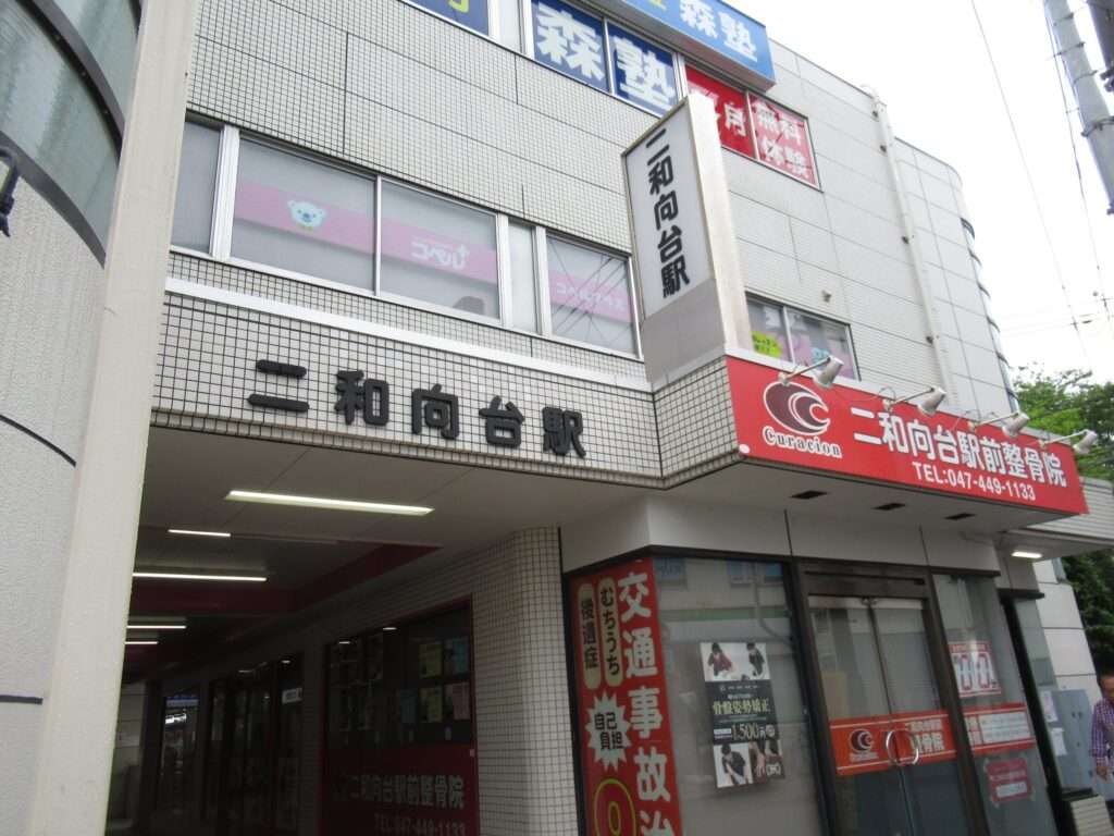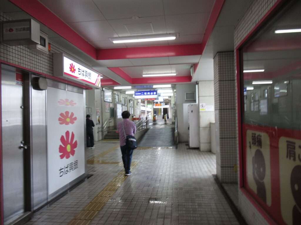 今年(2025年令和7年)に吸収合併により京成電鉄松戸線と改められた元新京成線の二和向台駅でございます。複線区間にある相対式2面2線の地上駅で、駅舎ビル1階に改札があり、ホーム間は上屋付きの跨線橋で連絡しております。