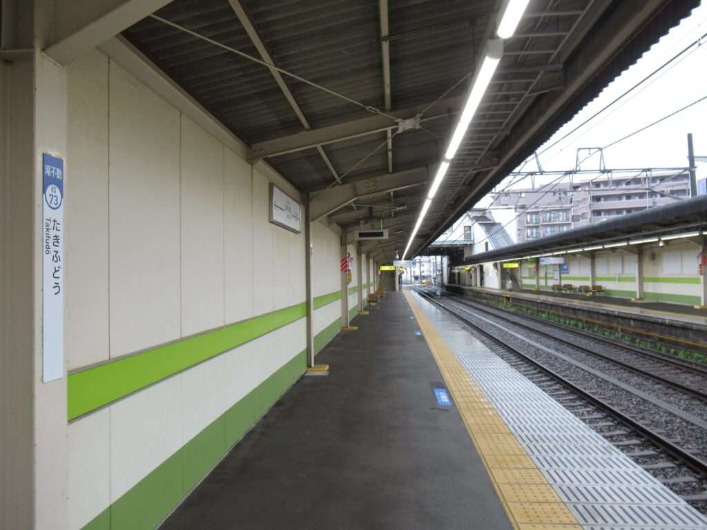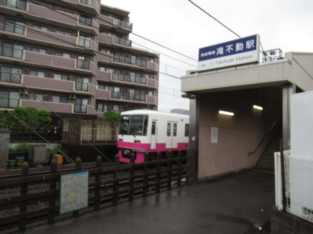今年(2025年令和7年)に吸収合併により京成電鉄松戸線と改められた元新京成線の滝不動駅でございます。複線区間にある相対式2面2線の地上駅で、自由通路になっている跨線橋に改札がある橋上駅となっております。御滝不動尊こと御滝山金蔵寺の最寄りであることから名付けられた駅名でございます。