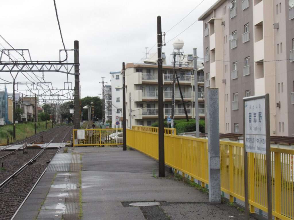 今年(2025年令和7年)に吸収合併により京成電鉄松戸線と改められた元新京成線の習志野駅でございます。複線区間にある相対式2面2線の地上駅で、地上部に鉄骨造りの駅舎があり、ホーム間は上屋付きの跨線橋で連絡しております。習志野市ではなく船橋市に所在する駅で、千葉日本大学第一中学校・高等学校、千葉県立薬園台高等学校などの最寄り駅となっております。