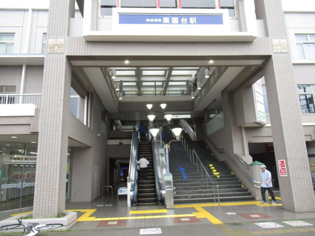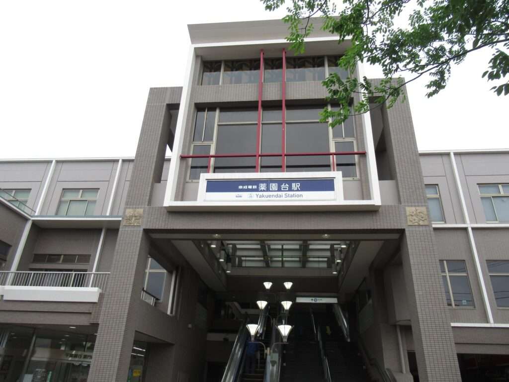薬園台駅(やくえんだいえき)は、千葉県船橋市薬円台にある、京成電鉄松戸線の駅である。駅前広場は第10回緑のデザイン賞緑化大賞に選定されている。江戸時代に徳川吉宗がこの地域に開園した下総薬園(薬草園)に由来する。駅周辺の地名は元々「薬園台町」であったが、住居表示実施時に「薬円台」と表記が変更された(住居表示未実施の「薬園台町1丁目」も駅南東に残っている)。このため周辺の施設や建物では「円」と「園」の両方の表記が混在している。島式ホーム1面2線を有する地上駅で、3階建ての薬園台駅ビルがある。2000年(平成12年)7月の駅移転までは相対式2面2線の地上駅であった。メインエントランスの上部に薬園台の名前の由来となった薬草園をイメージしたステンドグラスが飾られている。多機能トイレを併設したトイレは3階のコンコース及び2階の駅ビル内に設置。自動改札機(改札口)は南側に1か所、出入口は東口と西口の2か所あり、エレベーターとエスカレーターが設置されている。駅東口側には国道296号が走り、西口側に駅前広場が整備されている。