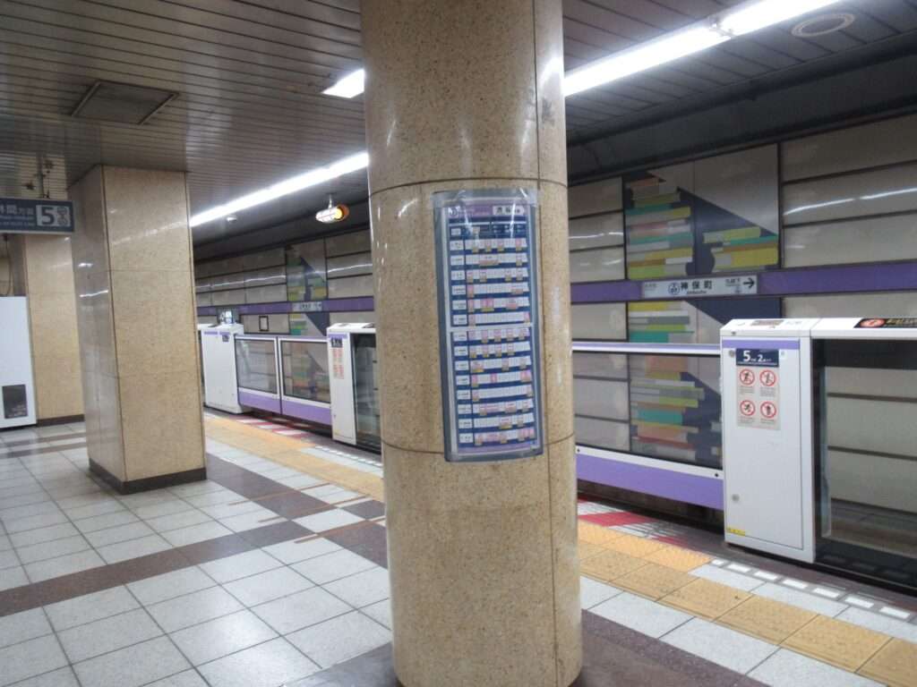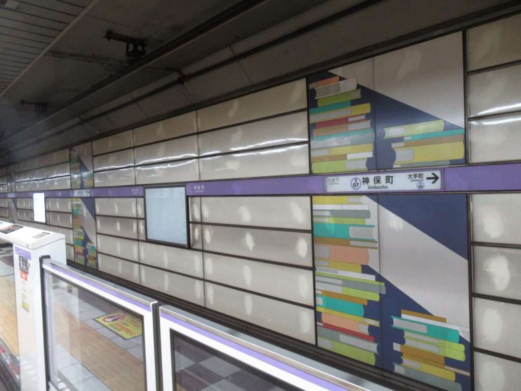 東京メトロ半蔵門線と東京都交通局都営地下鉄の三田線・都営新宿線の神保町駅でございます。専修大学前の副駅名が付けられております。半蔵門線は島式1面2線、三田線は島式1面2線、新宿線は相対式2面2線の地下駅でございます。ホームの部分では三田線が白山通りの直下、都営新宿線と半蔵門線が靖国通りの直下にございます。本の街として古書店や新刊書店が多く立地しており、多くの学校・大学がある学生街として有名でございます。専修大学神田キャンパス、共立女子大学、共立女子中学校・高等学校、明治大学駿河台キャンパス、日本大学駿河台キャンパス、正則学園高等学校、錦城学園高等学校などの最寄り駅でもございます。