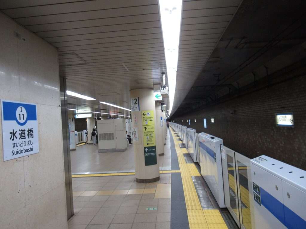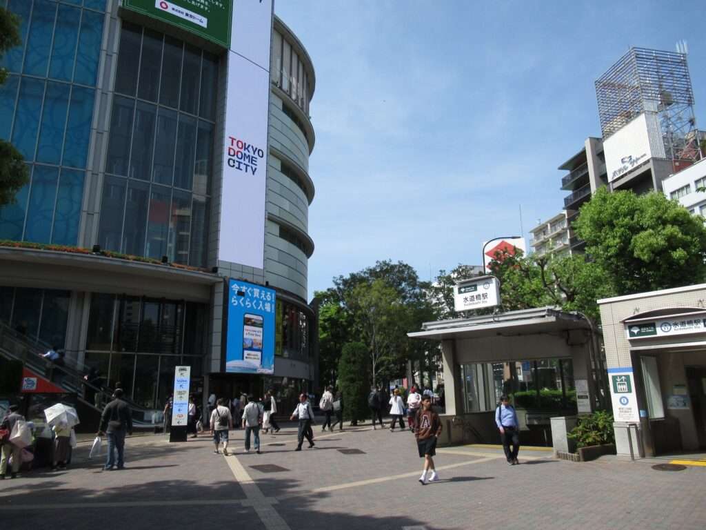 東京都交通局の都営地下鉄三田線の水道橋駅でございます。島式1面2線の地下駅となっております。地上部直ぐに東京ドームシティがございます。周辺は文京区と千代田区に跨って大学・高校など教育施設が多数あり、日本大学法学部・経済学部、東京歯科大学短期大学、中央大学大学院理工学研究科・理工学部後楽園キャンパス、専修大学神田キャンパス、東洋学園大学本郷キャンパス、桜蔭中学校・高等学校、東京都立工芸高等学校、昭和第一高等学校、東洋高等学校、神田女学園中学校・高等学校などの最寄り駅となっております。