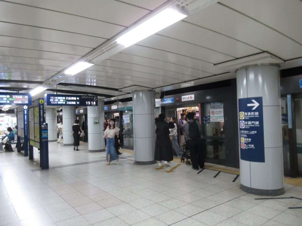 東京メトロこと東京地下鉄南北線線の永田町駅でございます。同じ東京メトロの半蔵門線、有楽町が乗り入れ、また銀座線と丸ノ内線の赤坂見附駅とも同一駅として扱われております。フルスクリーンタイプのホームドアが採用されている島式1面2線の地下駅となっております。永田町は主要な各政党の本部が立地している日本の政治の中枢である場所でございます。