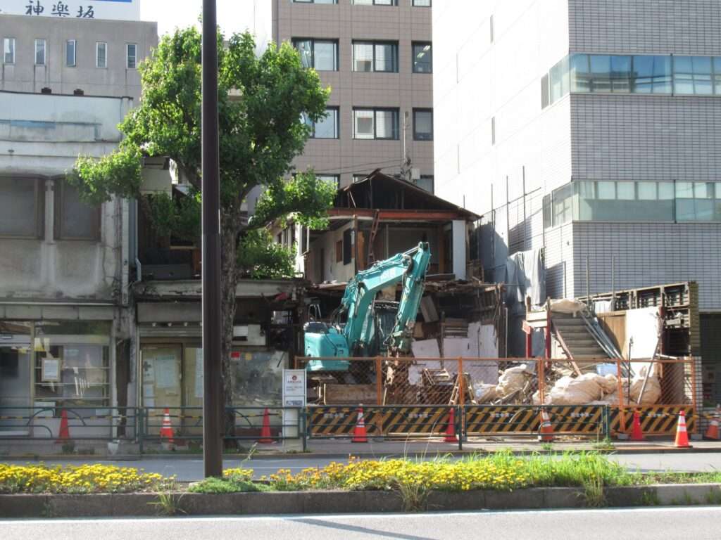 今年の1月に終焉@神楽坂下っつう拙記事を載せてるんですが、神楽坂下交差点にほど近い、外堀通りに面したところにある、ワタクシが若かりし頃にこよなく愛した食堂インドールの入っている超古い建物、取り壊し作業中に遭遇しちゃいましたよ。返す返す、今までよく持ちこたえたものでございますですよ。時の流れを感じてメソってしまうワタクシでございます。