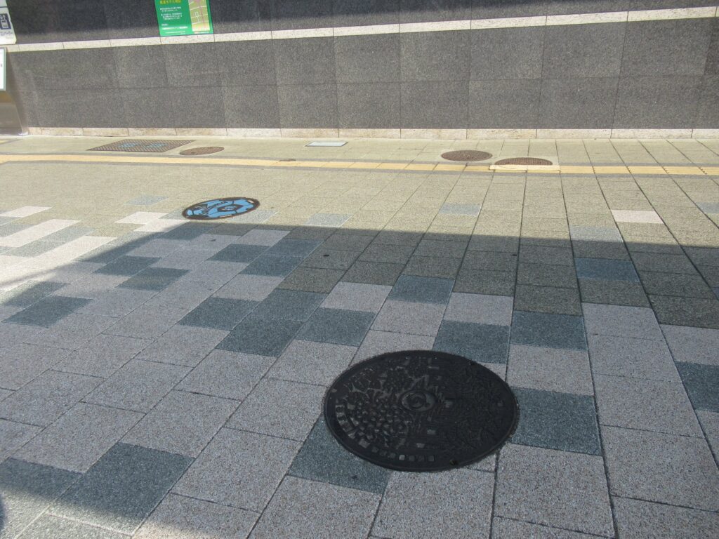 川越線の日進駅前広場にあったサッカーボールデザインの排水弁蓋でございます。なにしろ、浦和レッズと大宮アルディージャの2つのJリーグチームを擁するさいたま市でございますので、サッカーボールデザインの蓋は多種を沢山見かけるのでございます。