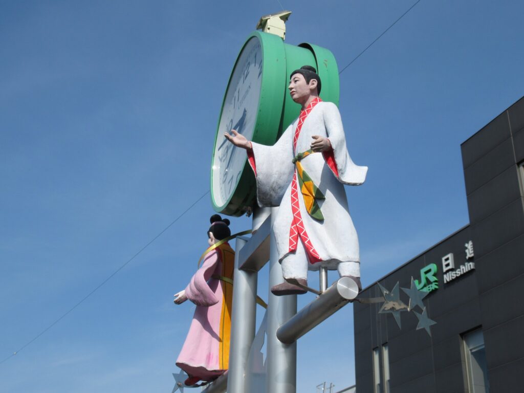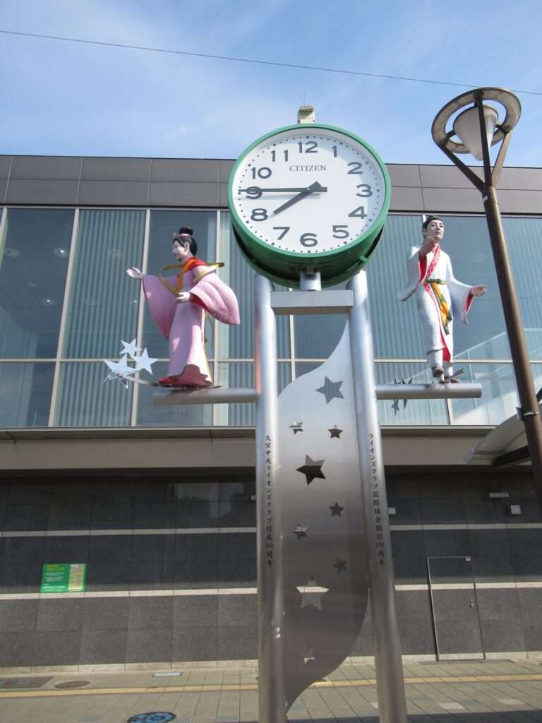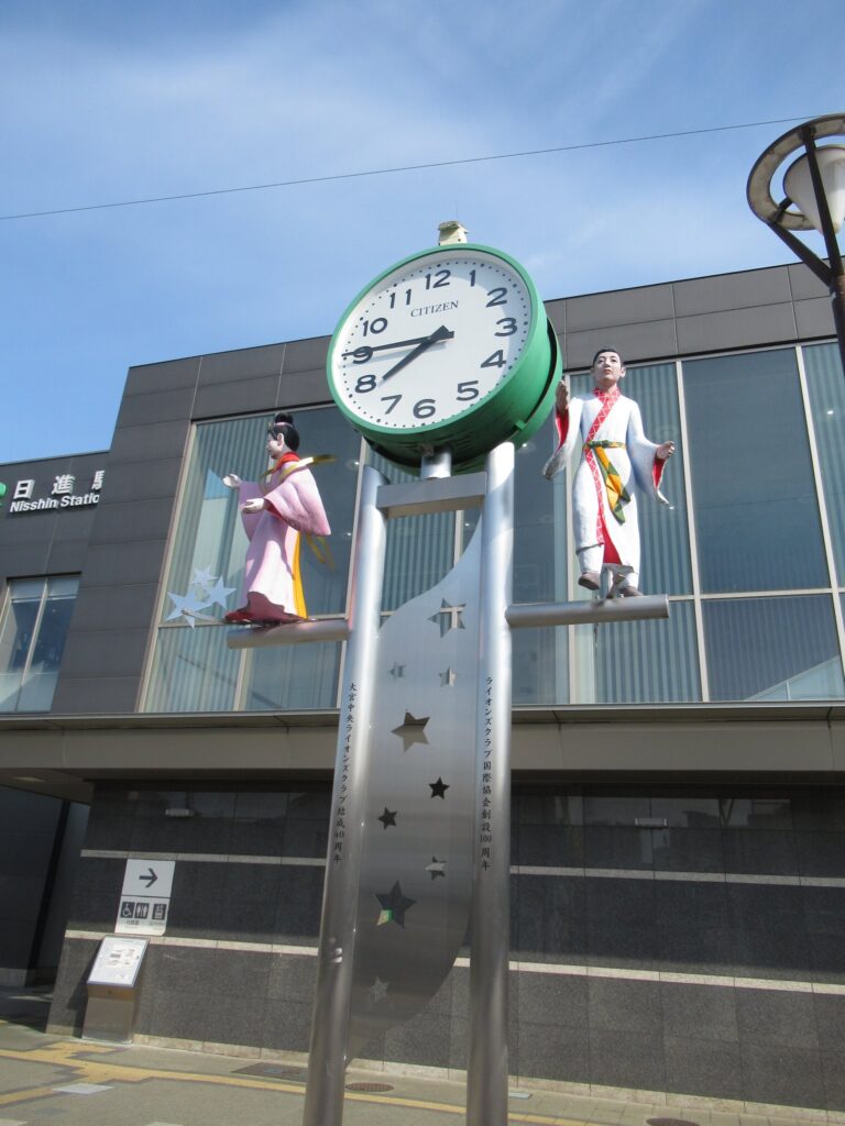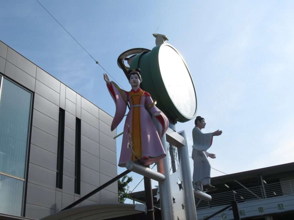 川越線の日進駅前広場にあるユニークな時計塔でございます。この地で毎年行われている「大宮日進七夕まつり」があることから七夕をモチーフにしたものですな。織姫と彦星の出会いを祝う七夕でございますですな、そこの奥さん(←何処の奥さん?)。