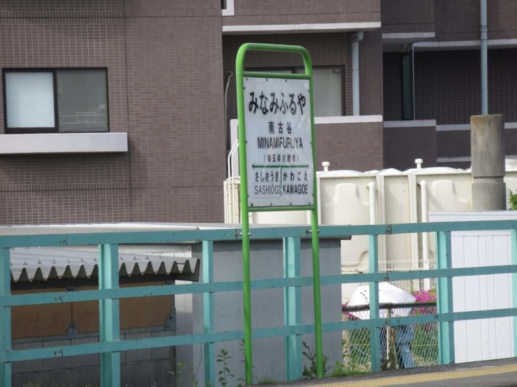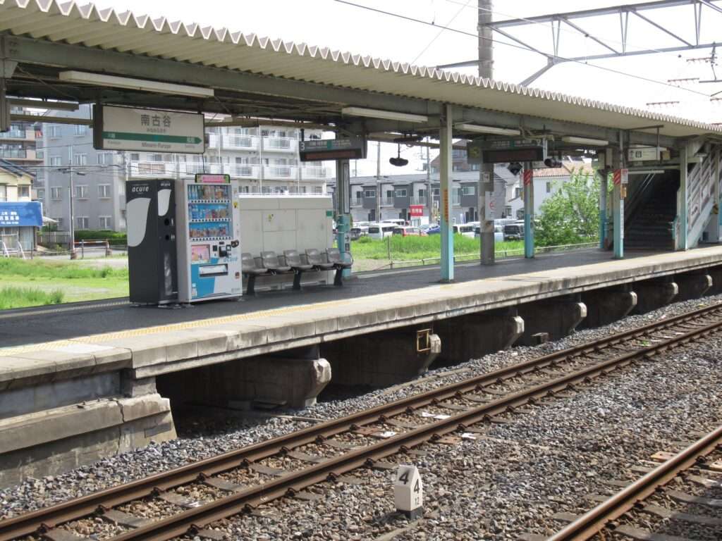 川越線の埼京線直通区間にある南古谷駅でございます。単線電化区間にある単式島式複合型の2面3線、いわゆる国鉄型配線の地上駅で、古い木造駅舎がある業務委託駅となっております。ホーム間は上屋付きの跨線橋で連絡しております。東邦音楽大学、東邦音楽大学附属東邦第二高等学校、埼玉県立川越高等技術専門校などの最寄り駅となっております。