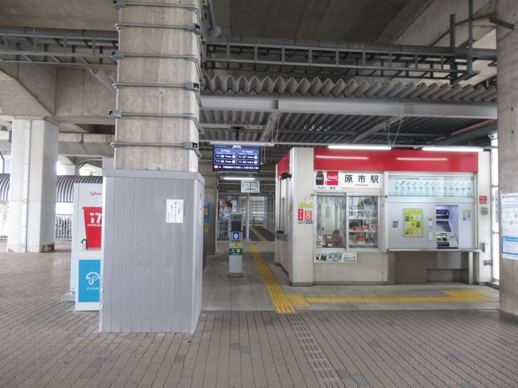 新交通システムAGTと呼ばれるゴムタイヤの案内軌条式鉄道路線、ニューシャトルこと埼玉新都市交通伊奈線の原市駅でございます。東北新幹線と上越新幹線を挟み込む形で敷設されている区間にある、相対式2面2線の高架駅となっております。駅舎と売店を兼ねている一部時間帯のみ有人となる改札口が高架下地上にございます。