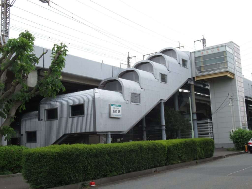 原市駅(はらいちえき)は、埼玉県上尾市五番町にある、埼玉新都市交通伊奈線(ニューシャトル)の駅である。相対式ホーム2面2線を有する高架駅。東北・上越新幹線の高架軌道を挟んで位置する。改札は内宿寄りにある。駅名となっている原市(旧原市町)の中心は沼南駅寄りにある。駅前の両端は区画整理された住宅街が形成されており、アパートやマンション、原市駅前公園がある。駅の北側に埼玉県道5号さいたま菖蒲線(バイパス)が2007年に開通し、小売店や飲食店が点在する。東大宮駅まで2.5 kmほどの距離だが、路線バスの運行本数は少ない。バイパスと線路の中間に旧県道5号線の原市大通りがある。吉野原駅との中間部にニューシャトルの駅から至近の日帰り入浴施設(スーパー銭湯)が2008年に開業した。