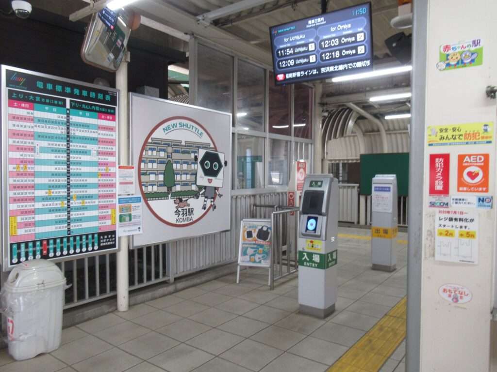 新交通システムAGTと呼ばれるゴムタイヤの案内軌条式鉄道路線、ニューシャトルこと埼玉新都市交通伊奈線の今羽駅でございます。東北新幹線と上越新幹線を挟み込む形で敷設されている区間にある、相対式2面2線の高架駅となっております。駅舎と売店を兼ねている一部時間帯のみ有人となる改札口が高架下地上にございます。埼玉県立大宮工業高等学校などの最寄り駅となっております。