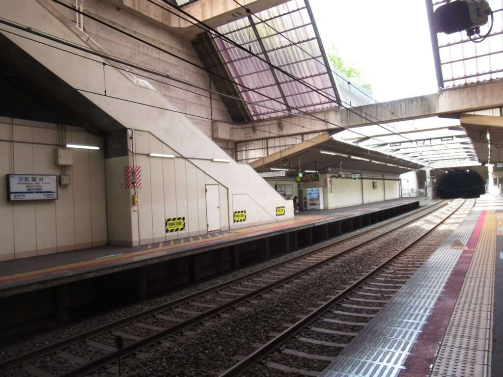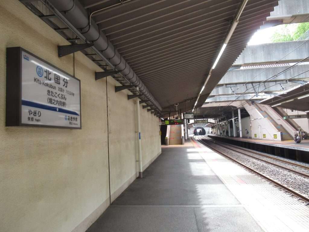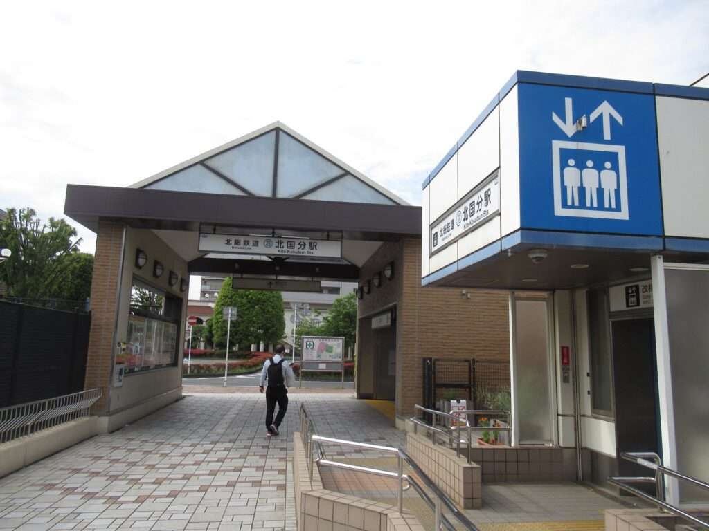 北総鉄道北総線の北国分駅でございます。 成田スカイアクセス線こと京成成田空港線と線路を共用している区間ですが、北総線の普通列車のみが停車いたします。トンネルに挟まれている掘割の中に敷設された複線区間にある相対式2面2線の半地下駅で、副駅名に堀之内貝塚が付けられております。市川市と松戸市の市境に位置しております。駅が出来る前は農村地帯然としていた地域ですが、近年開発が進みショッピングモールが出来るなど様相が変化しております。光英VERITAS中学校・高等学校などの最寄り駅となっております。