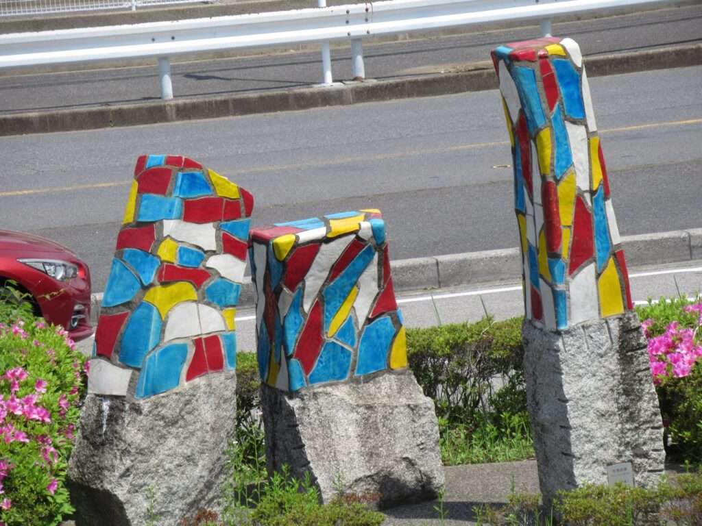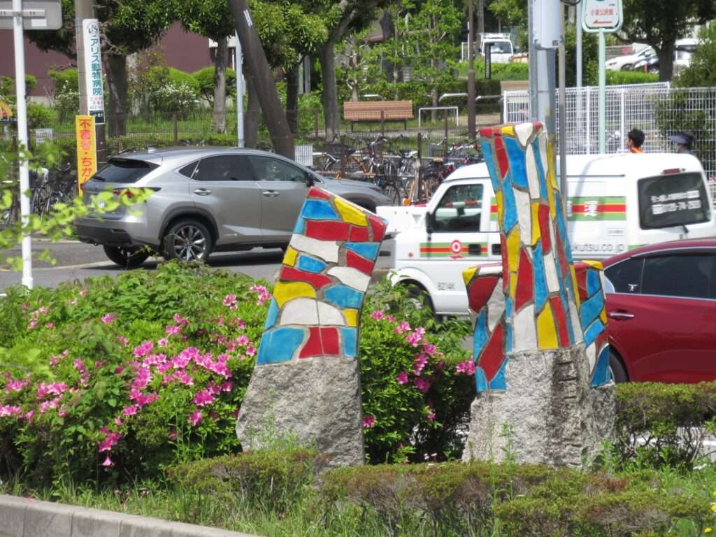北総鉄道北総線の小室駅前ロータリーにあったモニュメントでございます。3つの石柱上部にカラフルなタイルが張り付けられたものですね。かろうじて大地の芽というタイトルだけわかりましたが、その他は分かりませんでしたよ、そこの奥さん(←何処の奥さん?)。