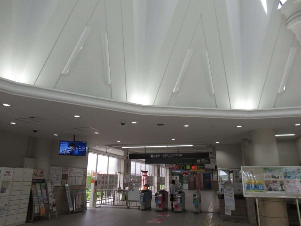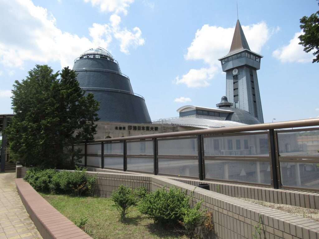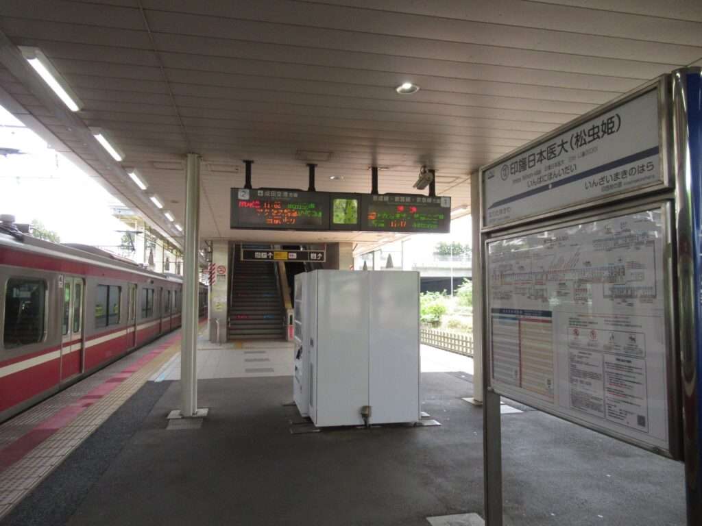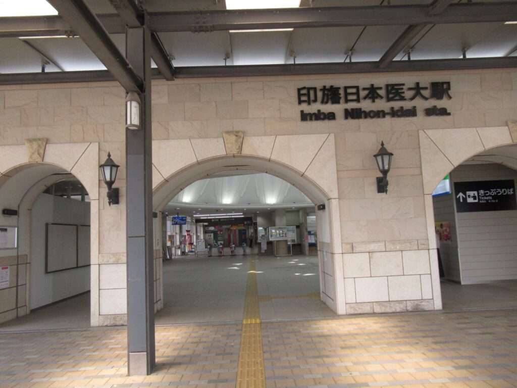 北総鉄道北総線と成田スカイアクセス線こと京成成田空港線の印旛日本医大駅でございます。京成高砂駅からここまで線路を共用している区間ですが北総線はここが終点となり、成田空港方面へは成田スカイアクセス線の列車のみが運行されます。掘割の中に敷設されている複線区間にある島式1面2線の地上駅で、成田方面に折り返し線がございます。副駅名に松虫姫が付けられております。掘割の中であるため橋上駅となっております。駅舎が欧風の古城をイメージした独特のデザインとなっております。順天堂大学さくらキャンパス、日本医科大学看護専門学校などの最寄り駅となっております。